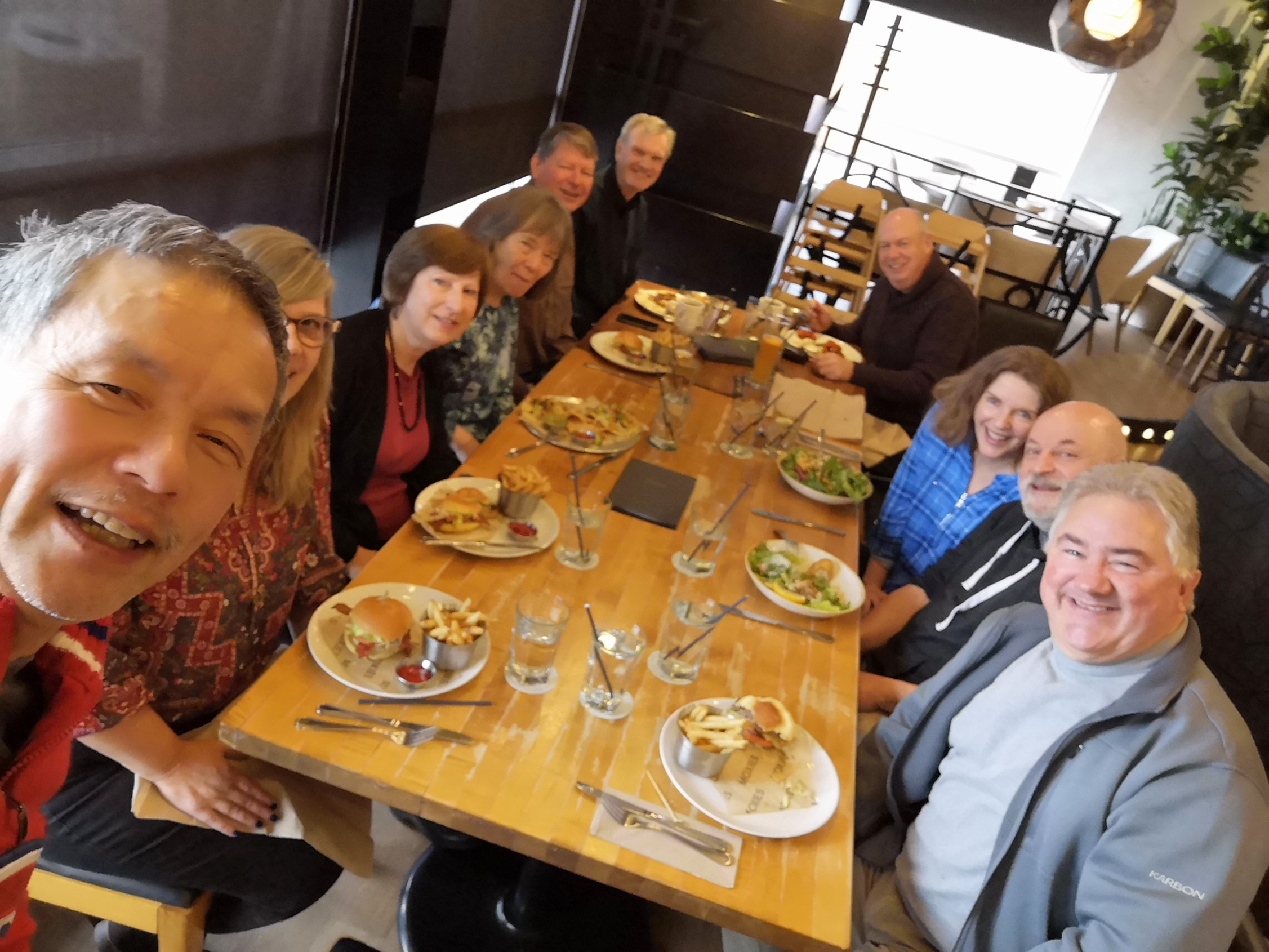 On Sunday Janice took us to Bob Hunter Memorial Park (part of the Rouge National Urban Park) so we could go for a walk with Marg and Mike and then we went out for Brunch. That evening we had a great smorgasbord dinner with the kids and partners. On Monday we had a FASDRR lunch get together at Moxie’s and it was great to catch up with some of our life time friends.