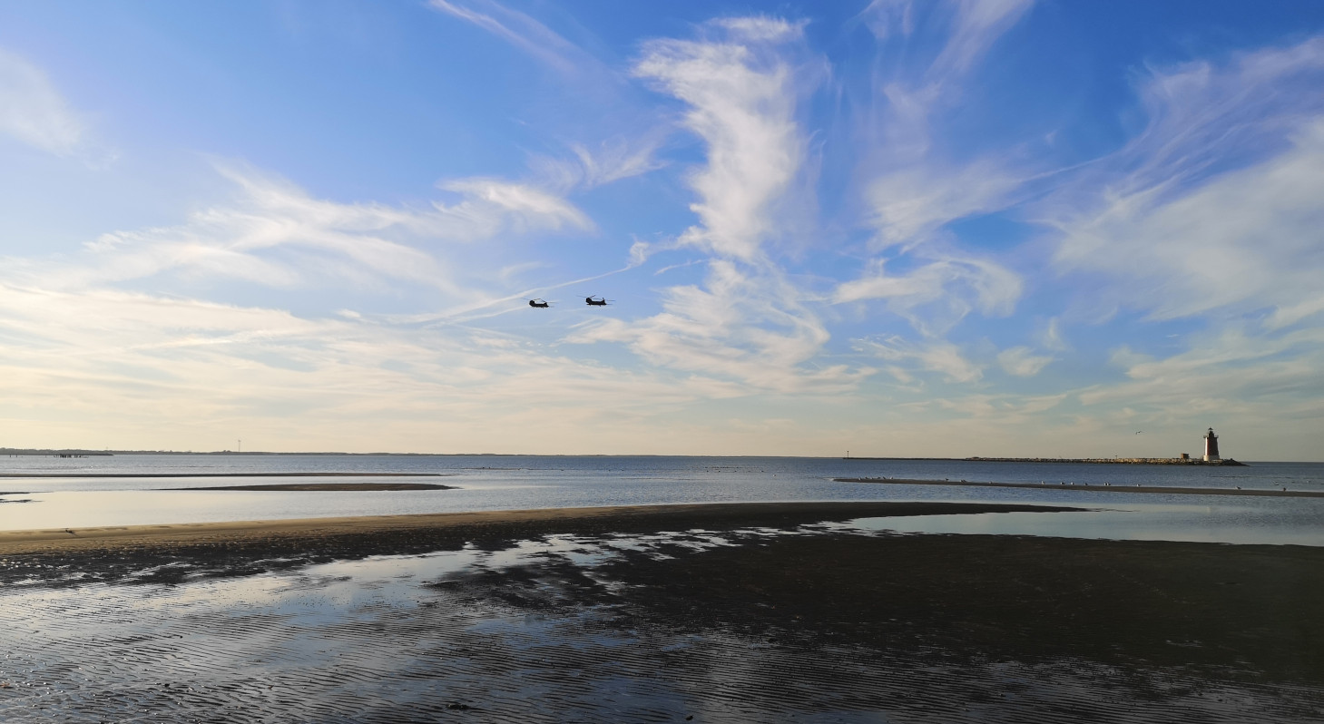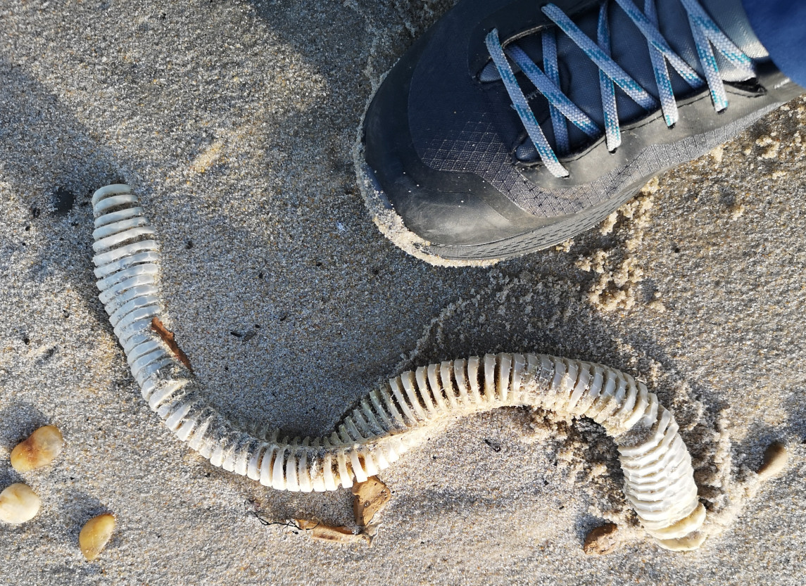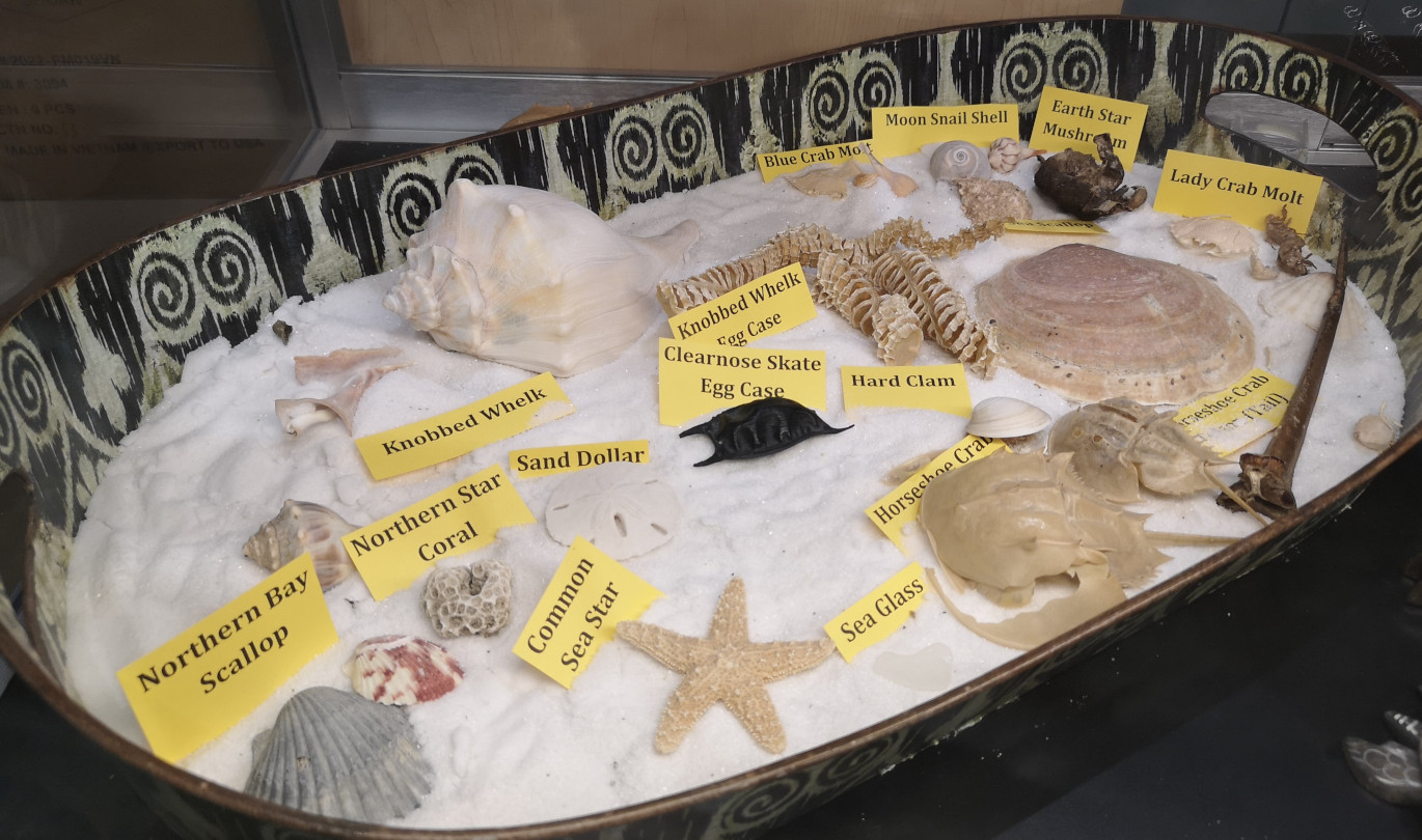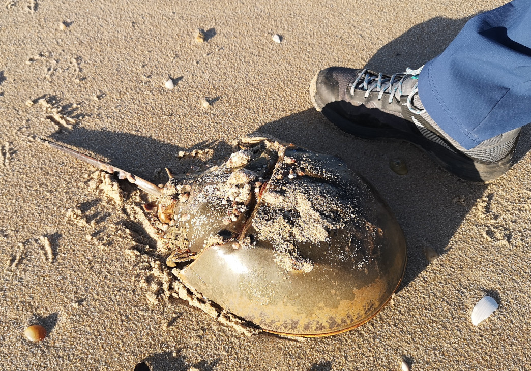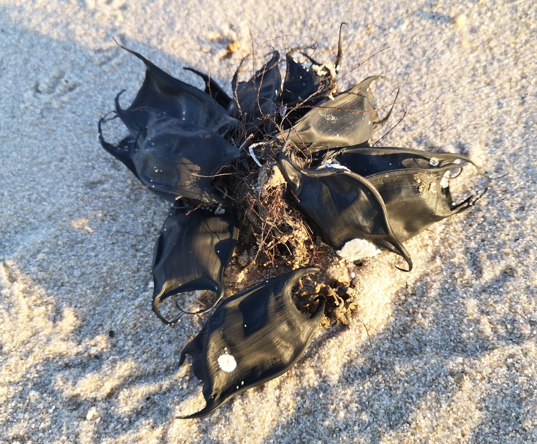 In our walk around the point, we saw lots of Horseshoe Crab shells. They were either shells the crab shed (very thin) or dead crabs that came in with the tide (birds usually having a meal in them). This area is a nursery for marine life but unfortunately, they don’t all survive. We saw the very interesting Whelk egg casings (a type of seashell) and a group of mermaid purse casings (baby skates). On the bay side of the point there was a faint sundog around the sun and some military helicopters flying by.