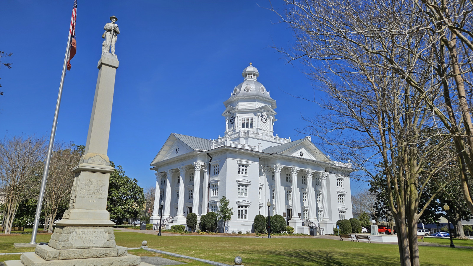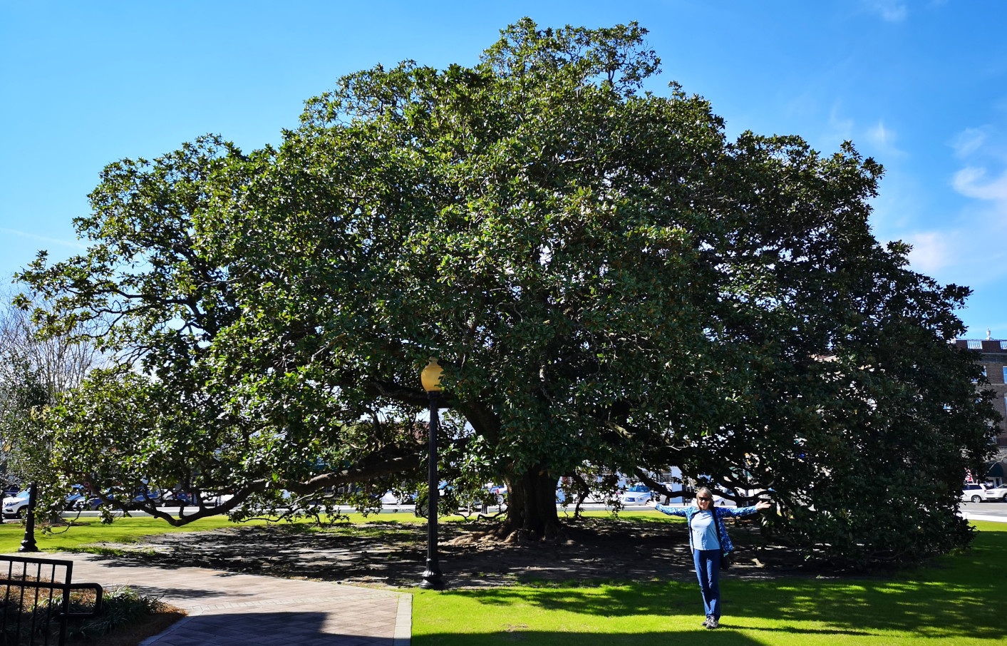We had some time before we needed to get to our harvest host for the night, so we stopped in downtown Moultrie to see the main square and the county courthouse. The outside of the courthouse was quite ornate but inside you really couldn’t see anything, except for the fallen solider table. We were hoping for a spiral staircase like we saw in Marfa Texas last year. In the square was a huge magnolia tree that had been planted in 1845 and was placed on the historic tree registry in 2021. Sharon did some shopping therapy, walking away with a new top that was on super sale for $10 (reg $87).