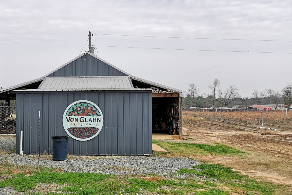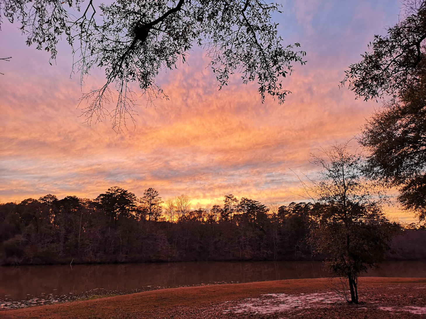We had chosen a couple of Harvest Host locations for Thursday and Friday because it was difficult getting a booking in a state park for the President’s Day long weekend. The first stop was Von Glahn farms which was on Trail 37 of the Georgia Grown agritourism highways. The farm was established in 2015 and is a family business with the parents and 4 children running the farm. On this farm they grow blueberries, cotton, pecans, blackberries, and they have beehives for honey. When we arrived we met the owner, and he told us where we could park and then showed us his products where we bought pecans, blueberries, and honey. We had a pretty sunset that night and the next morning we took a walk around the pecan orchard with some really old trees and some new ones as well. On the way out we could see the pecan processing barn and all the wagons that they would collect the pecans in.