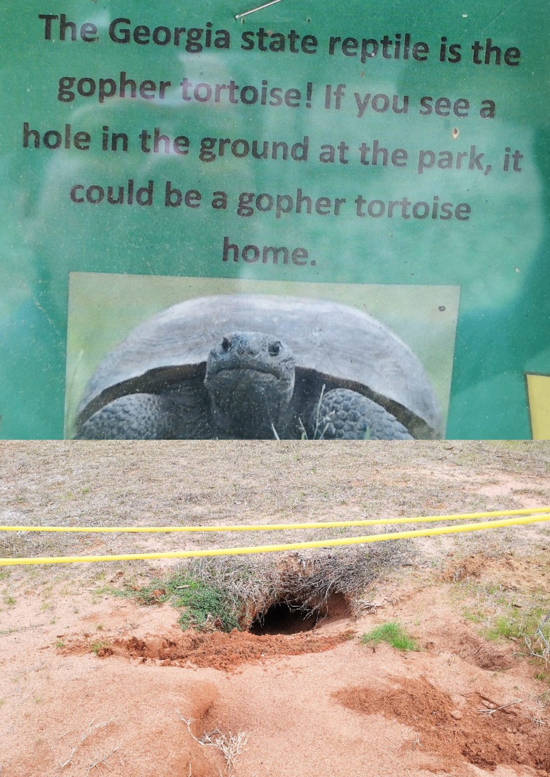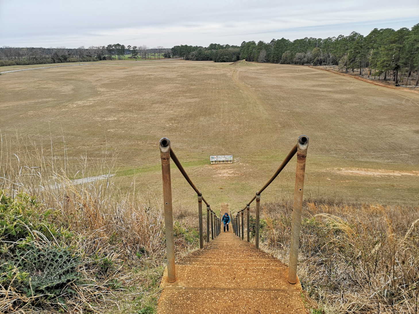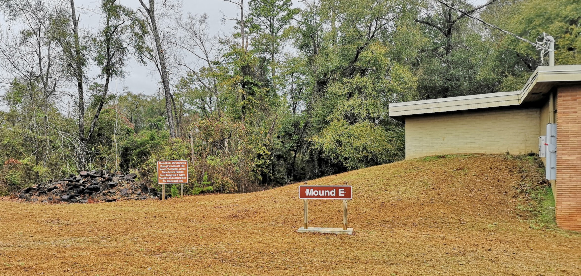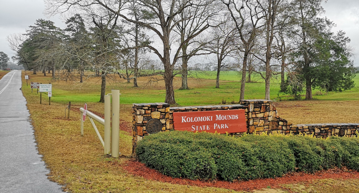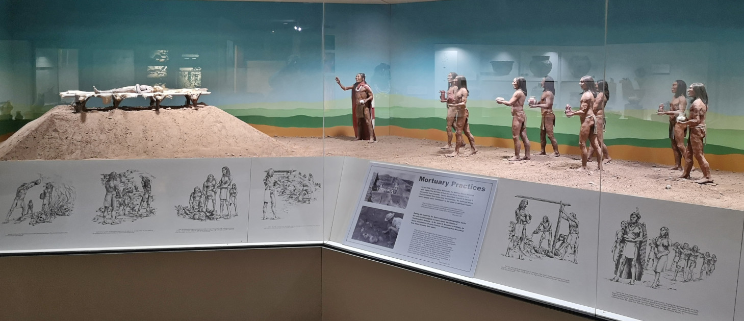 Our next stop was Kolomoki Mounds SP for 2 nights. Although we had to call the Georgia SP call centre to book it because on weekends, they have a 2-night minimum and the online booking wouldn’t let us book 1 site for Saturday night and a different site for Sunday night (which was all that was available). This historically significant park is the oldest and largest Woodland Indian site in the southeastern US, occupied by American Indians from 200 to 900 AD. The site is 197 acres and contains 9 mounds and a village. The park has Georgia’s oldest great temple mound, standing 56’ high, with 2 smaller burial mounds nearby and several ceremonial mounds in the area. The park’s museum is built around an excavated mound, providing an unusual setting for learning who these people were and how they lived. The museum has several pottery artifacts and a film with one of the head archaeologists talking about the history. Since we arrived before the official check in time, we visited the museum first. Here are some of the key facts we learned: