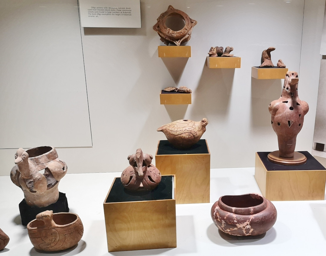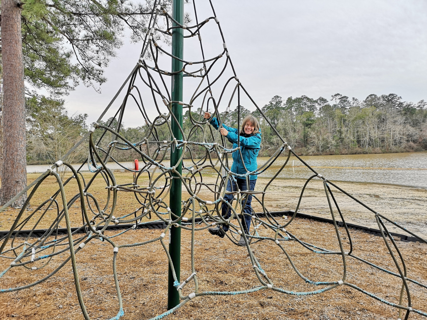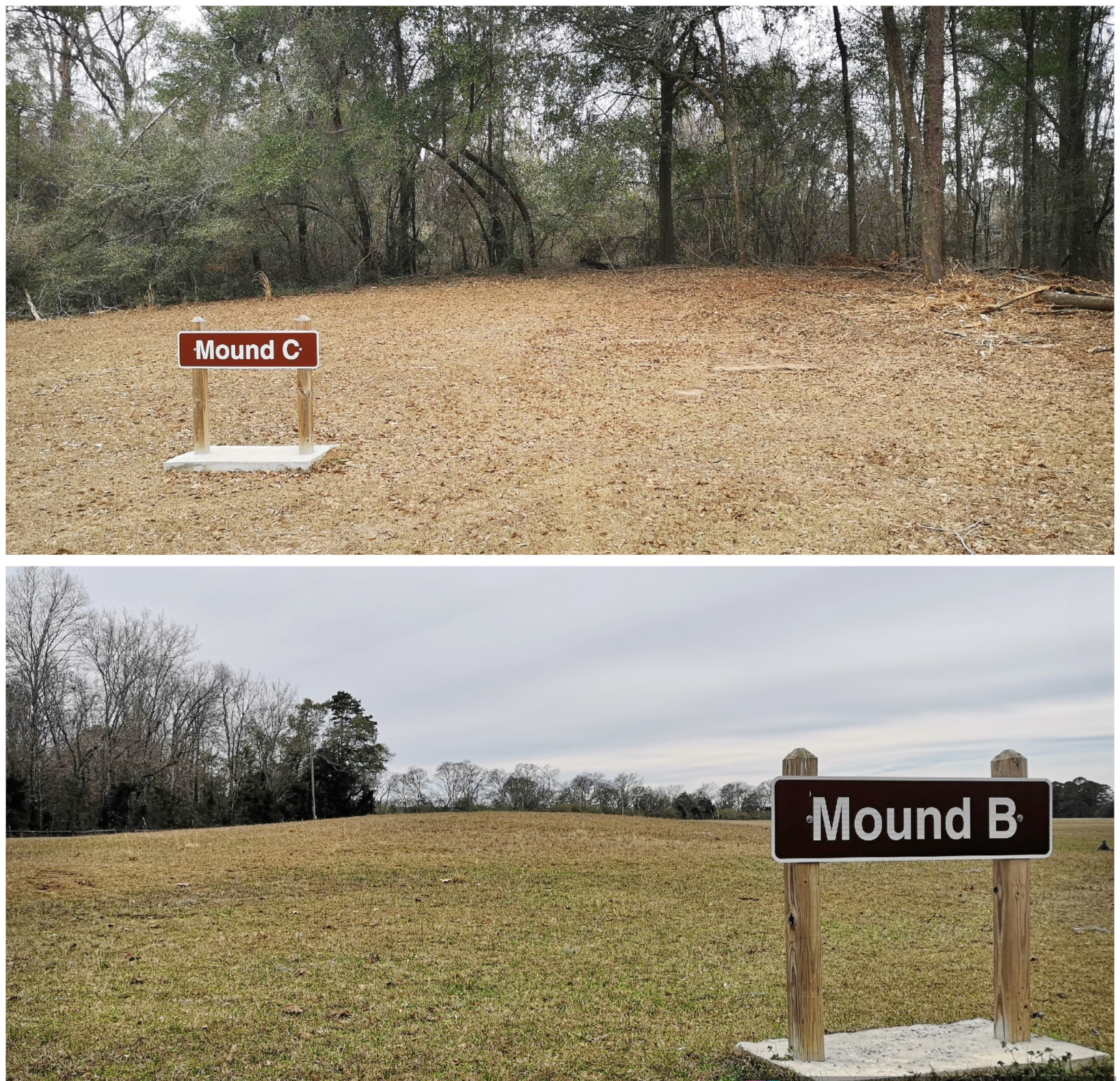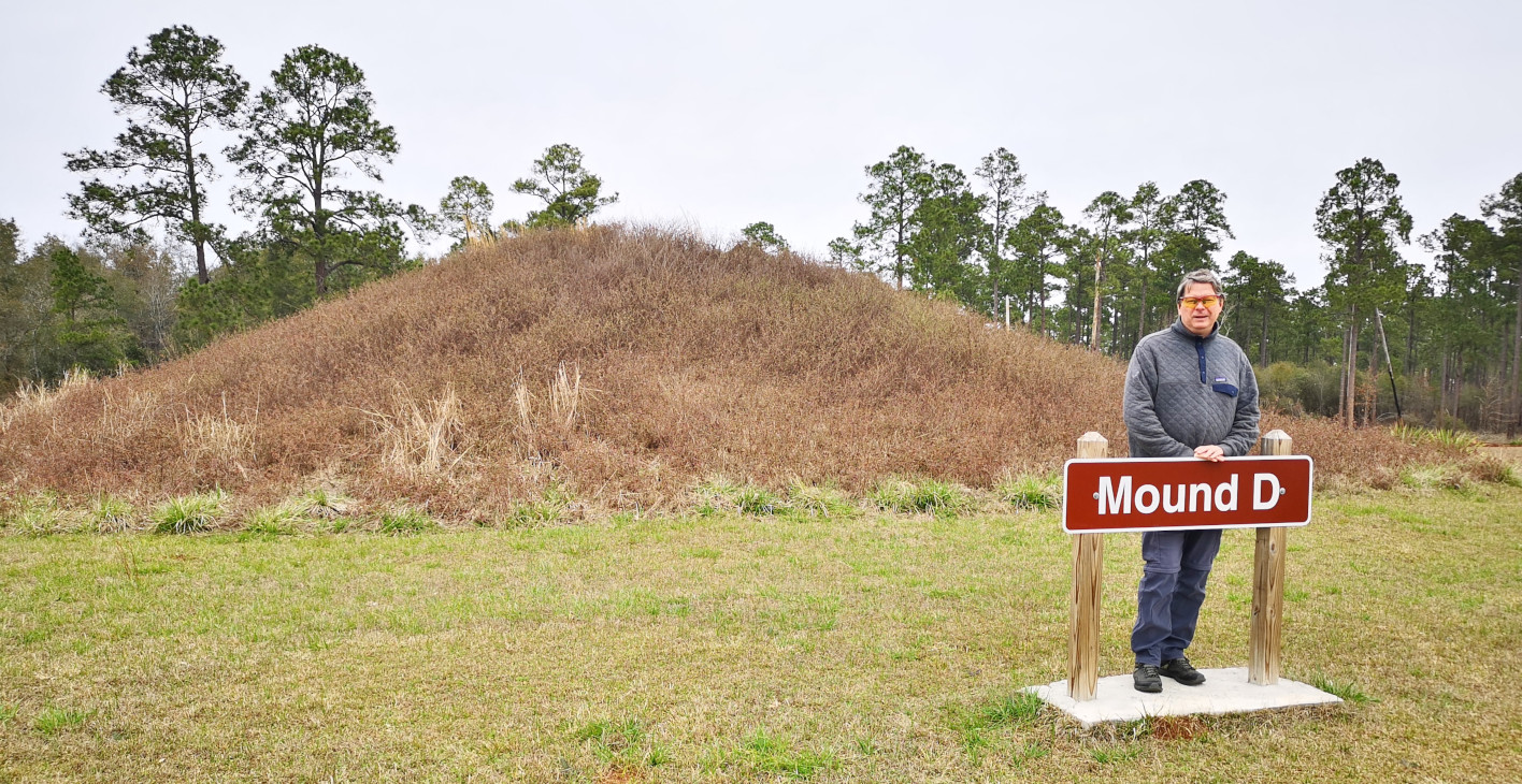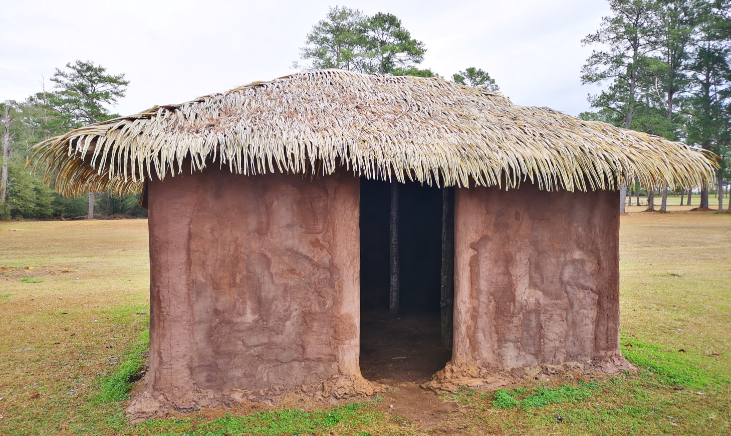 Our next stop was Kolomoki Mounds SP for 2 nights. Although we had to call the Georgia SP call centre to book it because on weekends, they have a 2-night minimum and the online booking wouldn’t let us book 1 site for Saturday night and a different site for Sunday night (which was all that was available). This historically significant park is the oldest and largest Woodland Indian site in the southeastern US, occupied by American Indians from 200 to 900 AD. The site is 197 acres and contains 9 mounds and a village. The park has Georgia’s oldest great temple mound, standing 56’ high, with 2 smaller burial mounds nearby and several ceremonial mounds in the area. The park’s museum is built around an excavated mound, providing an unusual setting for learning who these people were and how they lived. The museum has several pottery artifacts and a film with one of the head archaeologists talking about the history. Since we arrived before the official check in time, we visited the museum first. Here are some of the key facts we learned:
