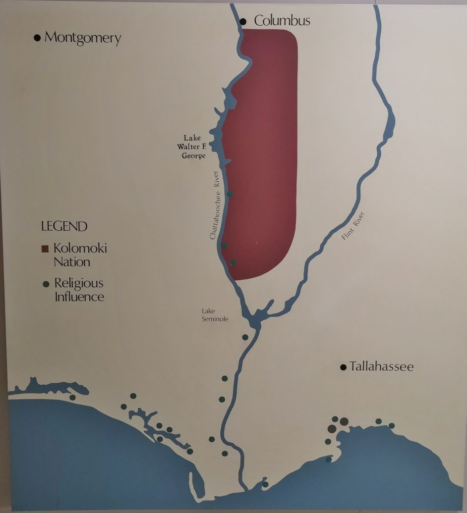 - The Kolomoki village was on elevated land with streams on 3 sides which was great for fresh water supply. The temple mound would have contained 2 buildings, 1 for the chief-priest or spiritual leader and the other would have contained sacred objects. In front of the mound was a large plaza area that the village would have encircled.