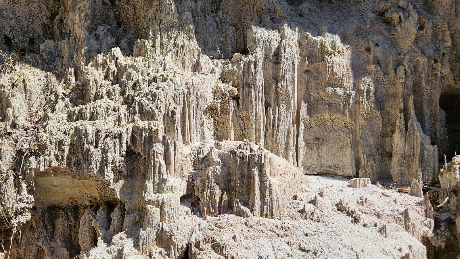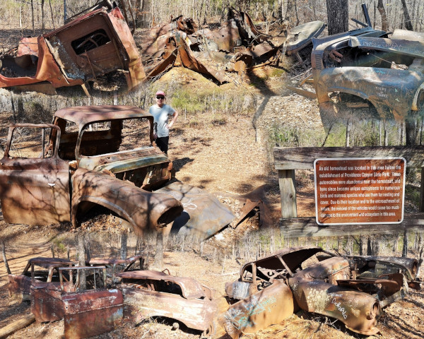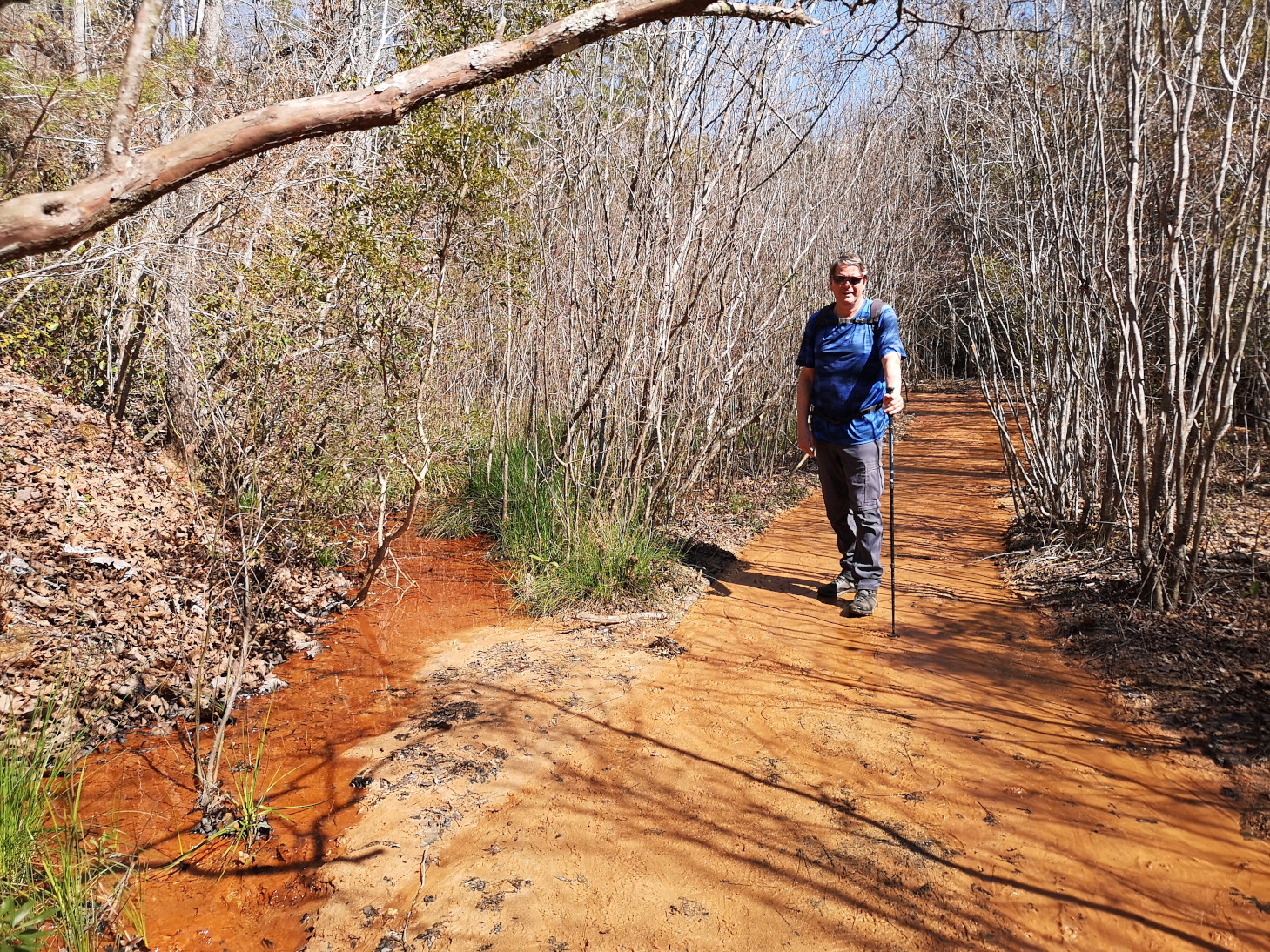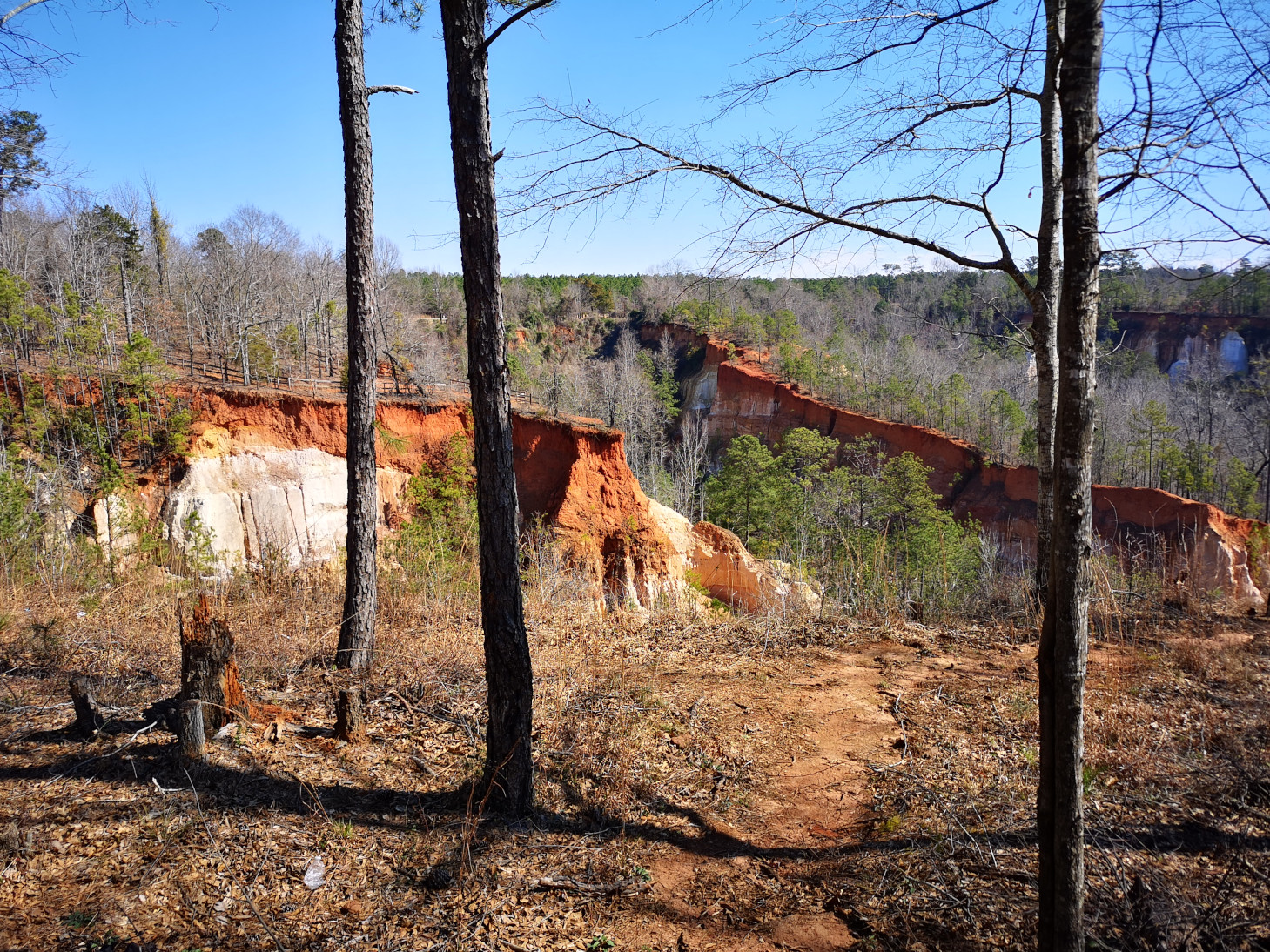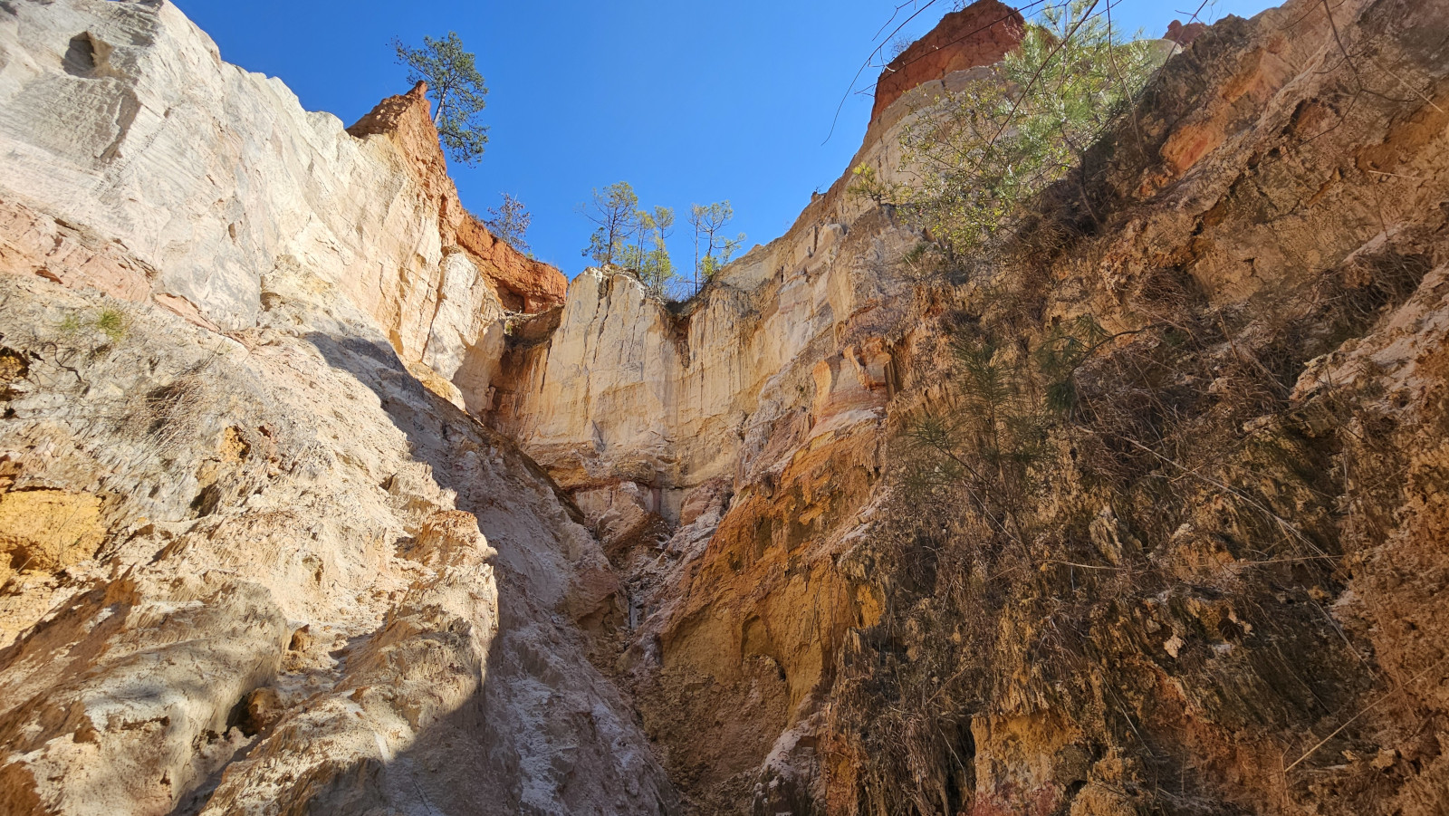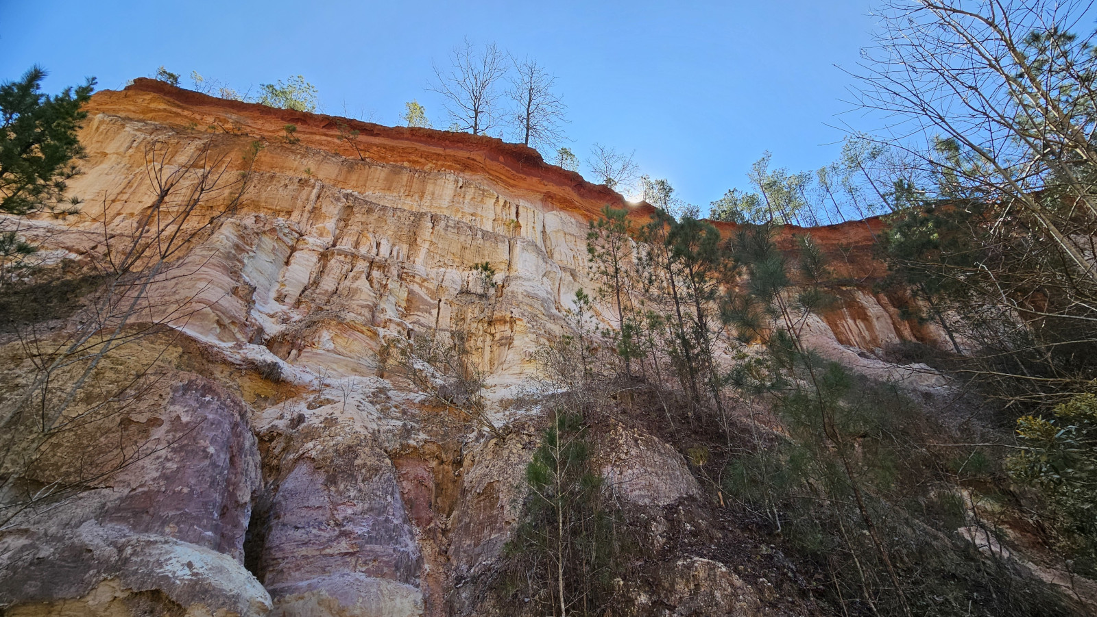 The next day we drove to Providence Canyon SP, also known as Georgia’s Little Grand Canyon. The park is 1,003 acres in size and is a geological marvel. The canyons were formed due to poor farming practices by the early settlers. In the early 1800’s all the trees were cleared to plant crops, but the soft soil all started to wash away as the tree roots had been holding the soil in place. In the 1850s the ditches were three to five feet deep, today they are as deep as 150 feet! There are 43 different shades of soil so there were lots of photo ops this day!! The colours range from white to various shades of pink, purple, red, brown, yellow, and black. The name of the canyon came from the Providence Methodist Church that was built in 1832. The park only has a few primitive campsites so it’s a popular day trip from the surrounding area.