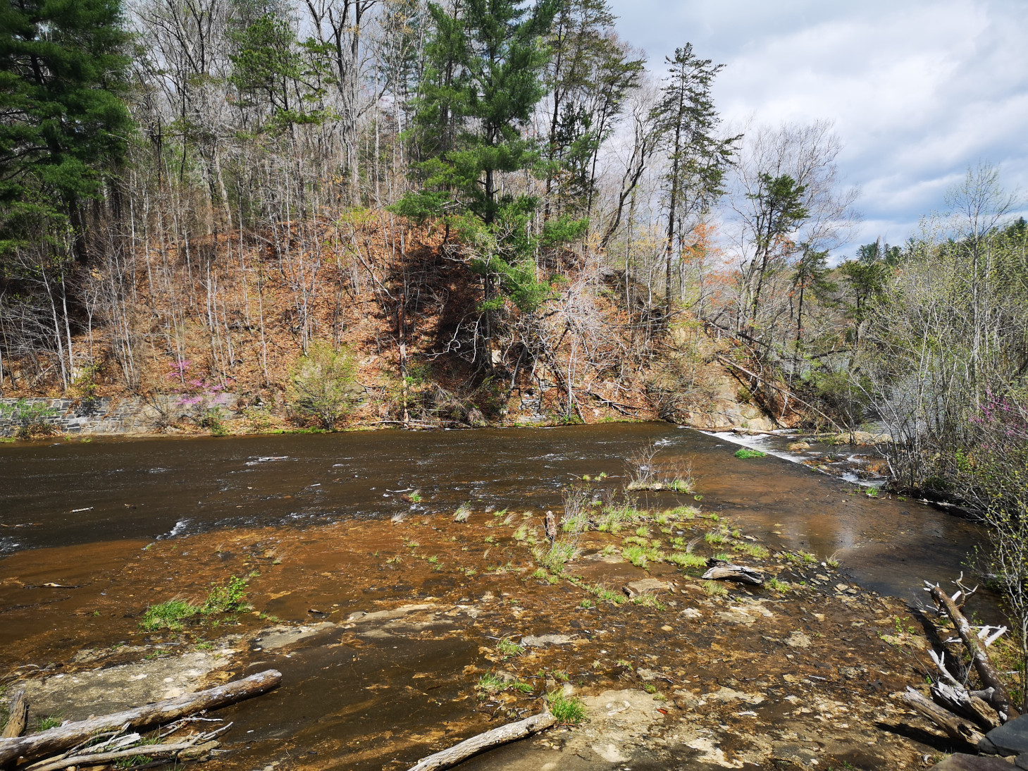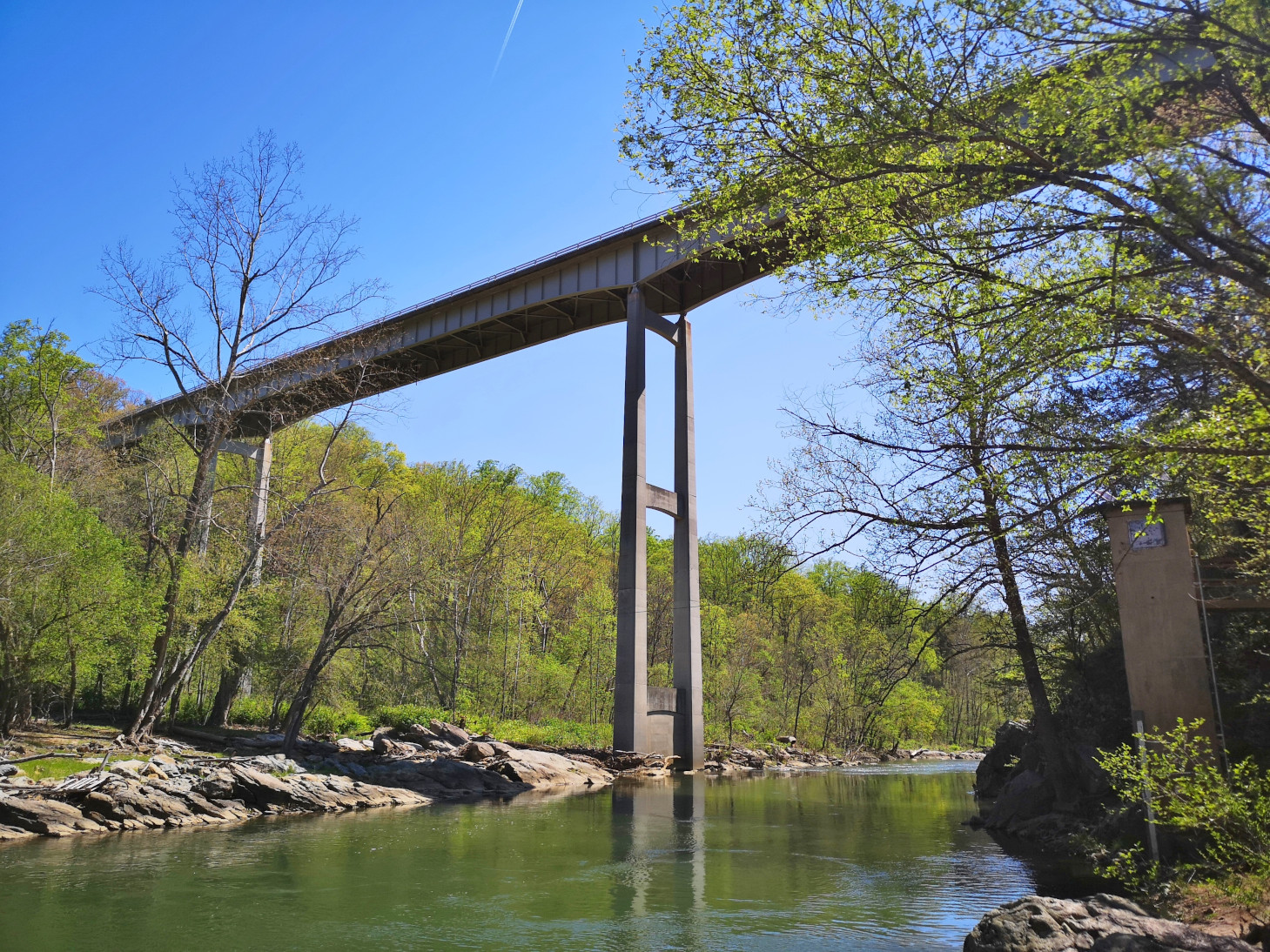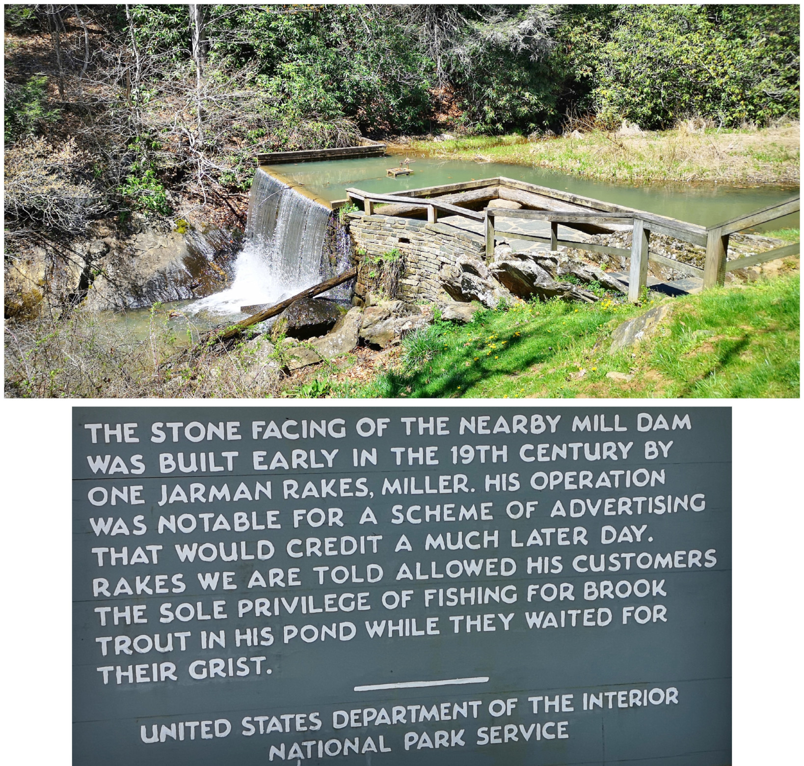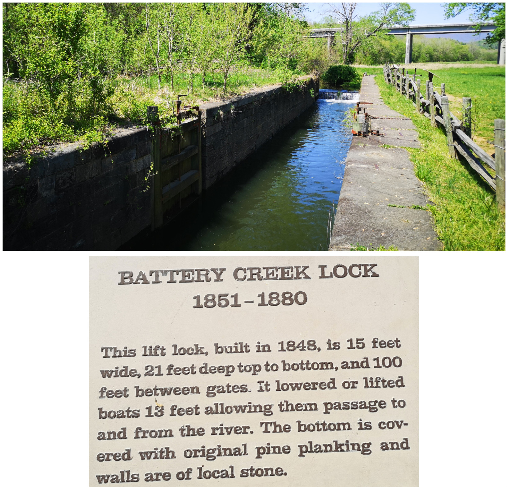 From Smith Mountain Lake SP we returned to the Blue Ridge Parkway and again we did a small back track. When we had passed the Roanoke River Overlook on Saturday, we saw a large waterfall over a dam by the Niagara Power Plant, so we decided to go back and take a look. Unfortunately, there was no water flowing on Monday! It turned out they did an aesthetic flow of water for the weekends so all we got to see was a tiny trickle. However, we did do the loop hike down into the valley to see the large bridge we had crossed and to see the power plant built in 1906 from the river level.