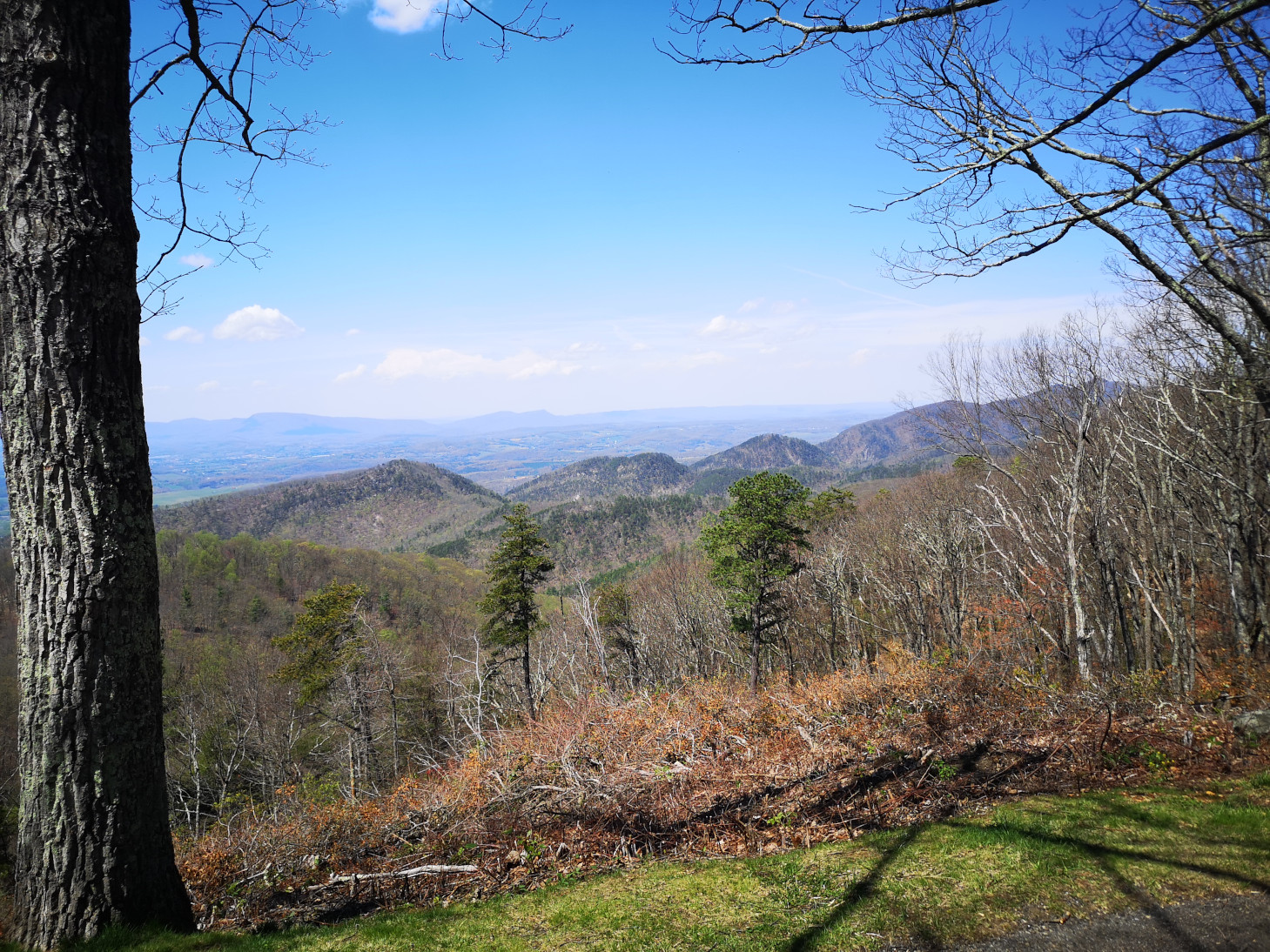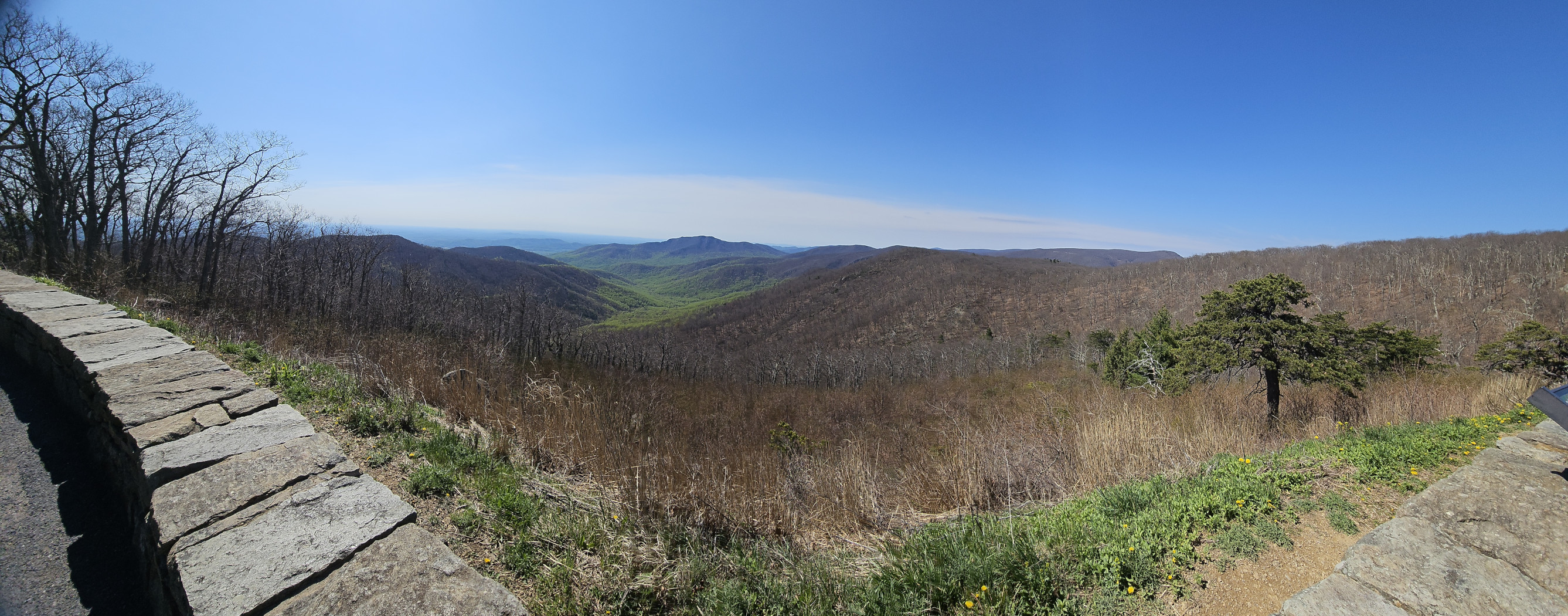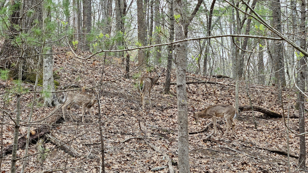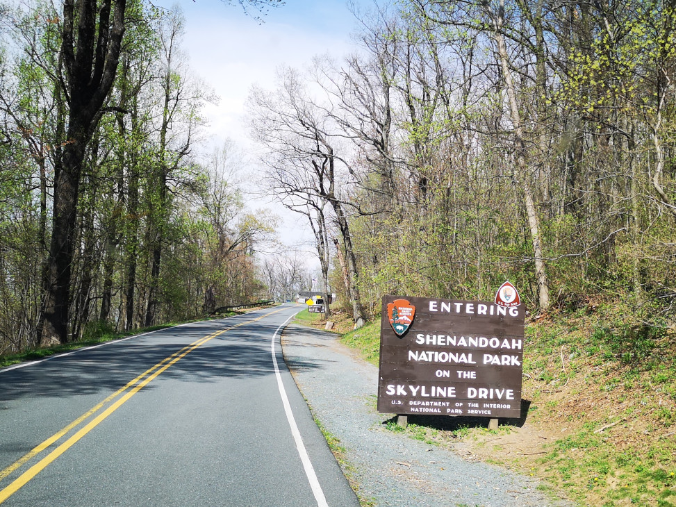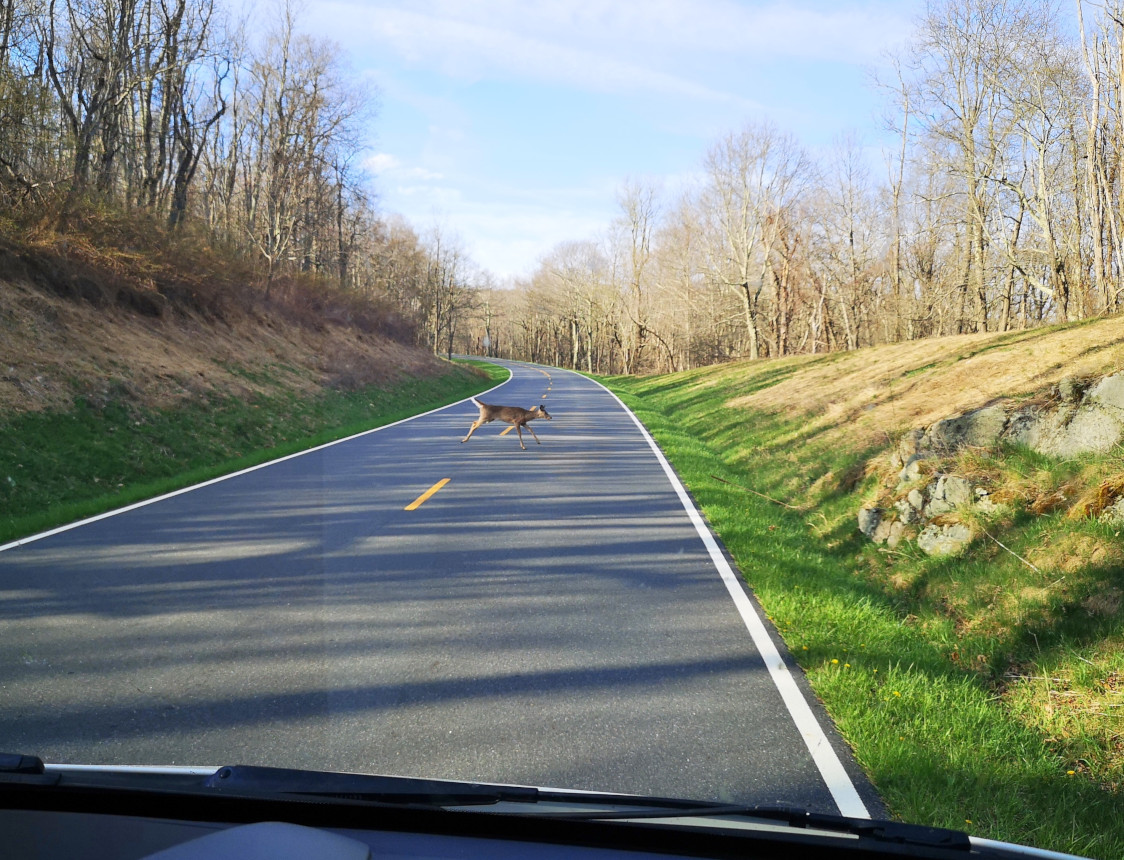 We covered a very large section of the Blue Ridge Parkway on this day. Our total for the day was 326 kms and 6.5 hours, very tiring for the driver. Again, it takes a long time due to the speed limit and the number of overlooks you stop at for the views. Our goal was to reach Big Meadow campground which was one of the very few that were open along the drive. The campground was so full that we were only able to book a no services site. All along the Parkway you see signs for the Appalachian Trail. It is a 2,200-mile hiking trail that extends from Georgia to Maine. It passes through 14 states and is listed as the longest hiking trail in the world. We saw lots of hikers doing either day hikes or with full backpacks camping along the route. On this section we reached the highest point in Virginia for the Parkway at 3950’. Your RV engine gets a good workout along the Parkway with all the up and downhill sections. Our next stop was James River where we went for a short hike under the bridge to the far side of the river where there was a lock system. The river is the largest in Virginia and therefore was a major transportation corridor. Canals and locks were built by the river to make it easier to transport goods by barge. When the railway expanded in the late 1800’s the canal system was no longer needed. On this day we finished the Blue Ridge Parkway and then entered Shenandoah National Park and Skyline Drive which is a 105 mile (169 km) National Parkway. We used our US National Park pass to enter this road as they charge a fee. The road speed limit is even slower at 35 mph and there are 75 overlooks along the road. Our weather started to cloud over a bit as we entered this road, so the views weren’t as spectacular. We stopped at the Point Overlook to climb down to the rock outcropping. As we approached Big Meadows campground we started to see lots of White-Tailed deer along the road.