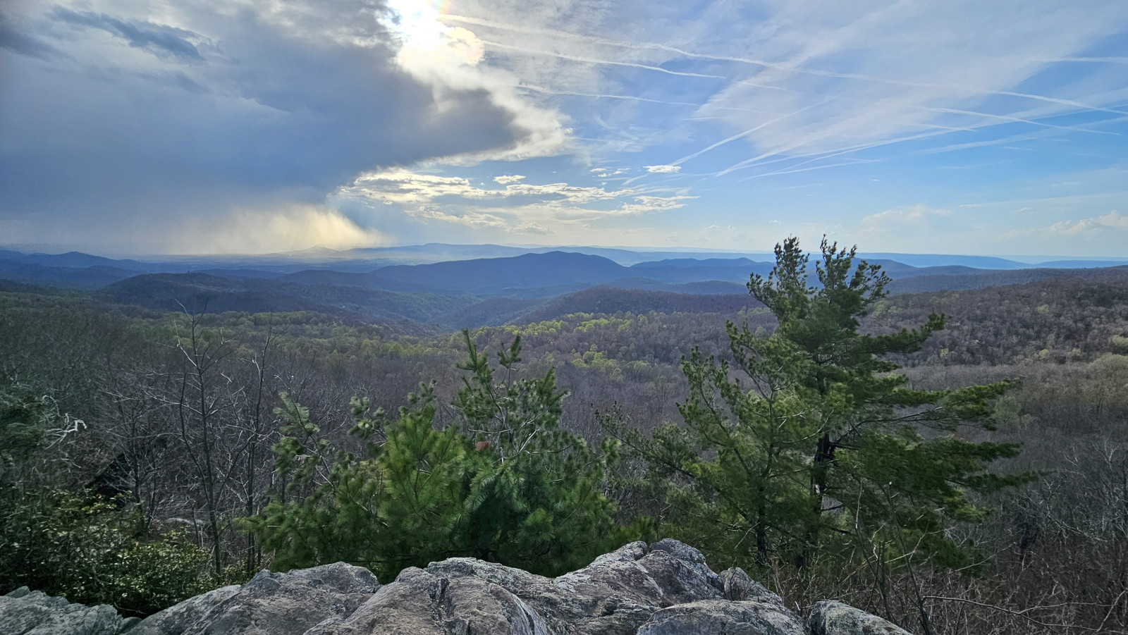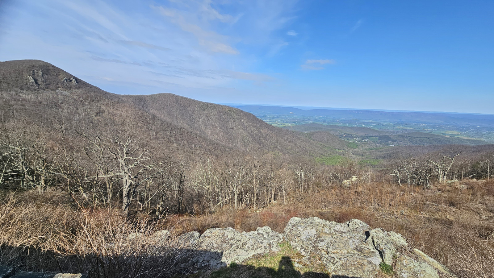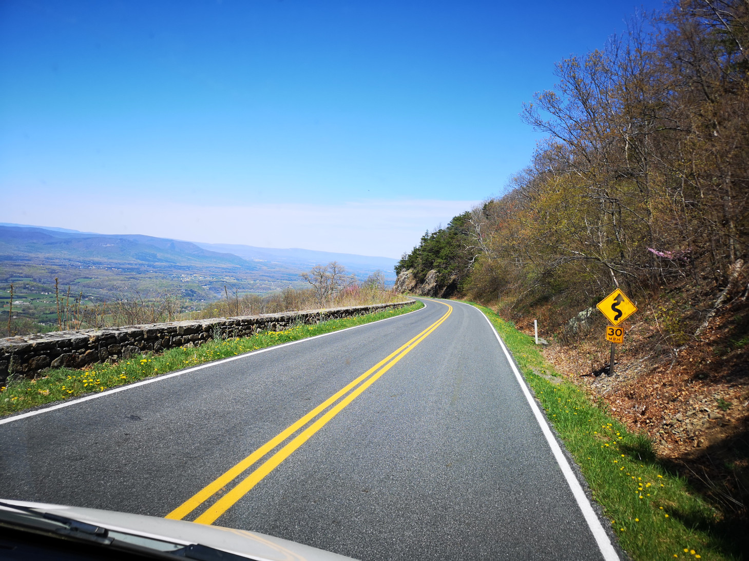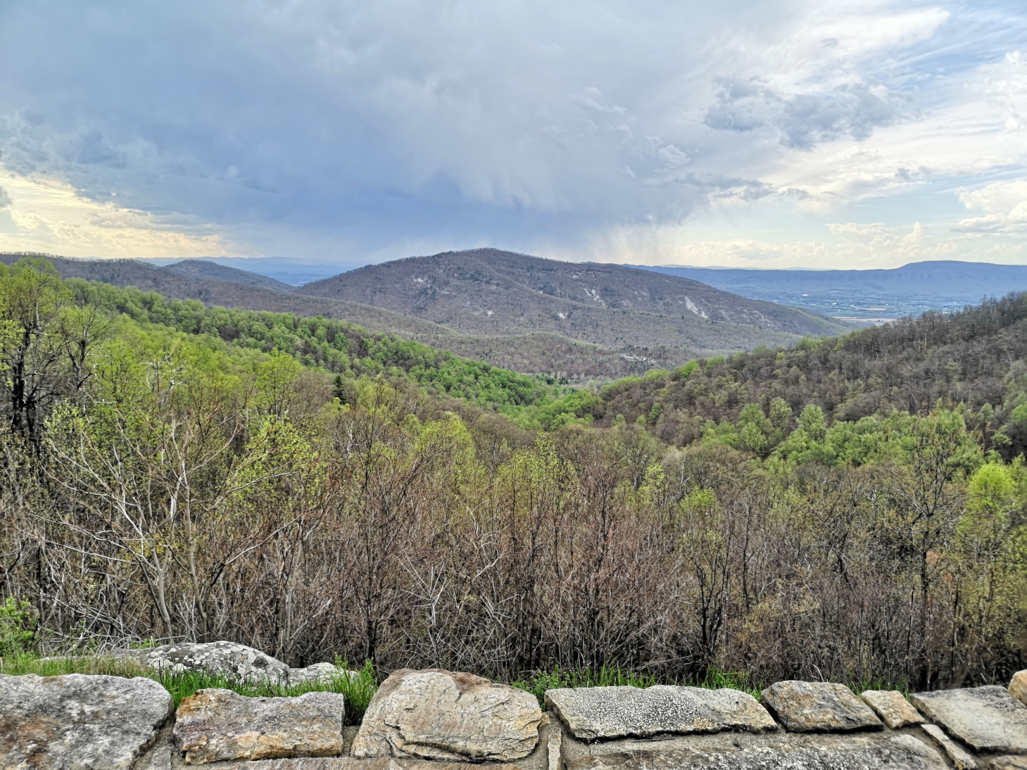 We covered a very large section of the Blue Ridge Parkway on this day. Our total for the day was 326 kms and 6.5 hours, very tiring for the driver. Again, it takes a long time due to the speed limit and the number of overlooks you stop at for the views. Our goal was to reach Big Meadow campground which was one of the very few that were open along the drive. The campground was so full that we were only able to book a no services site. All along the Parkway you see signs for the Appalachian Trail. It is a 2,200-mile hiking trail that extends from Georgia to Maine. It passes through 14 states and is listed as the longest hiking trail in the world. We saw lots of hikers doing either day hikes or with full backpacks camping along the route. On this section we reached the highest point in Virginia for the Parkway at 3950’. Your RV engine gets a good workout along the Parkway with all the up and downhill sections. Our next stop was James River where we went for a short hike under the bridge to the far side of the river where there was a lock system. The river is the largest in Virginia and therefore was a major transportation corridor. Canals and locks were built by the river to make it easier to transport goods by barge. When the railway expanded in the late 1800’s the canal system was no longer needed. On this day we finished the Blue Ridge Parkway and then entered Shenandoah National Park and Skyline Drive which is a 105 mile (169 km) National Parkway. We used our US National Park pass to enter this road as they charge a fee. The road speed limit is even slower at 35 mph and there are 75 overlooks along the road. Our weather started to cloud over a bit as we entered this road, so the views weren’t as spectacular. We stopped at the Point Overlook to climb down to the rock outcropping. As we approached Big Meadows campground we started to see lots of White-Tailed deer along the road.