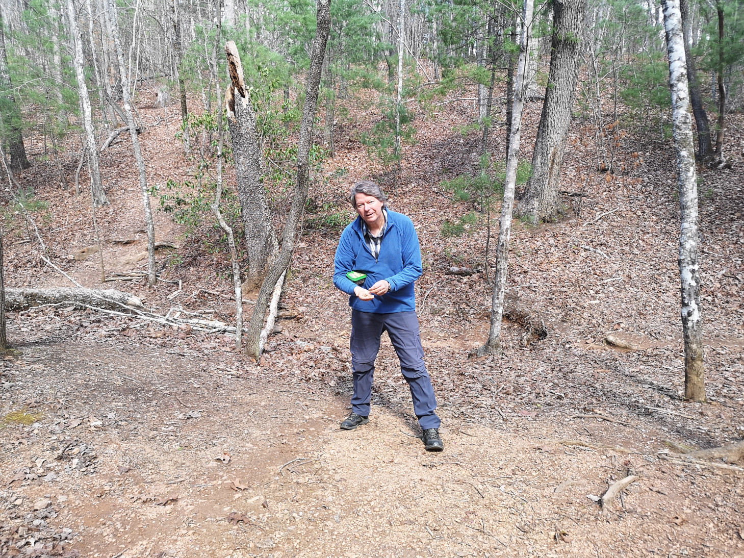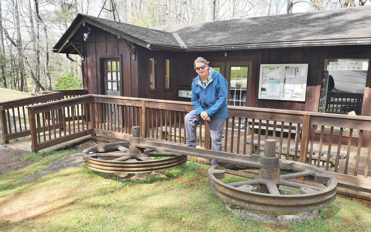 We were staying 2 nights at Fairy Stone SP so on our full day there it was nice and sunny, so we did a 5 km hike on the Lakeshore trail to the far end of the lake where the spillway flowed downstream. On the way back we saw 3 white tailed deer foraging in the forest and we saw butterflies in a pile of horse poop (apparently they get sodium and amino acids from the poop and it’s called mud-puddling, who knew😉). When we returned to the RV, we were looking at the ranger led schedule, so Sharon attended the Fairy Stone Workshop but unfortunately, they expected you to have already gone hunting for them (and we hadn’t yet). A bit later I joined up and we attended the Fayerdale missing mining town presentation. The ranger was incredibly knowledgeable and even though we were the only 2 people who came he spent 1.5 hours with us explaining the history of the mining town, talking about morse code communication in the early days, and then he walked us over to the sealed-up entrance for one of the mine shafts. This park had the most extensive list of ranger led programs of any of the parks we visited on this trip.