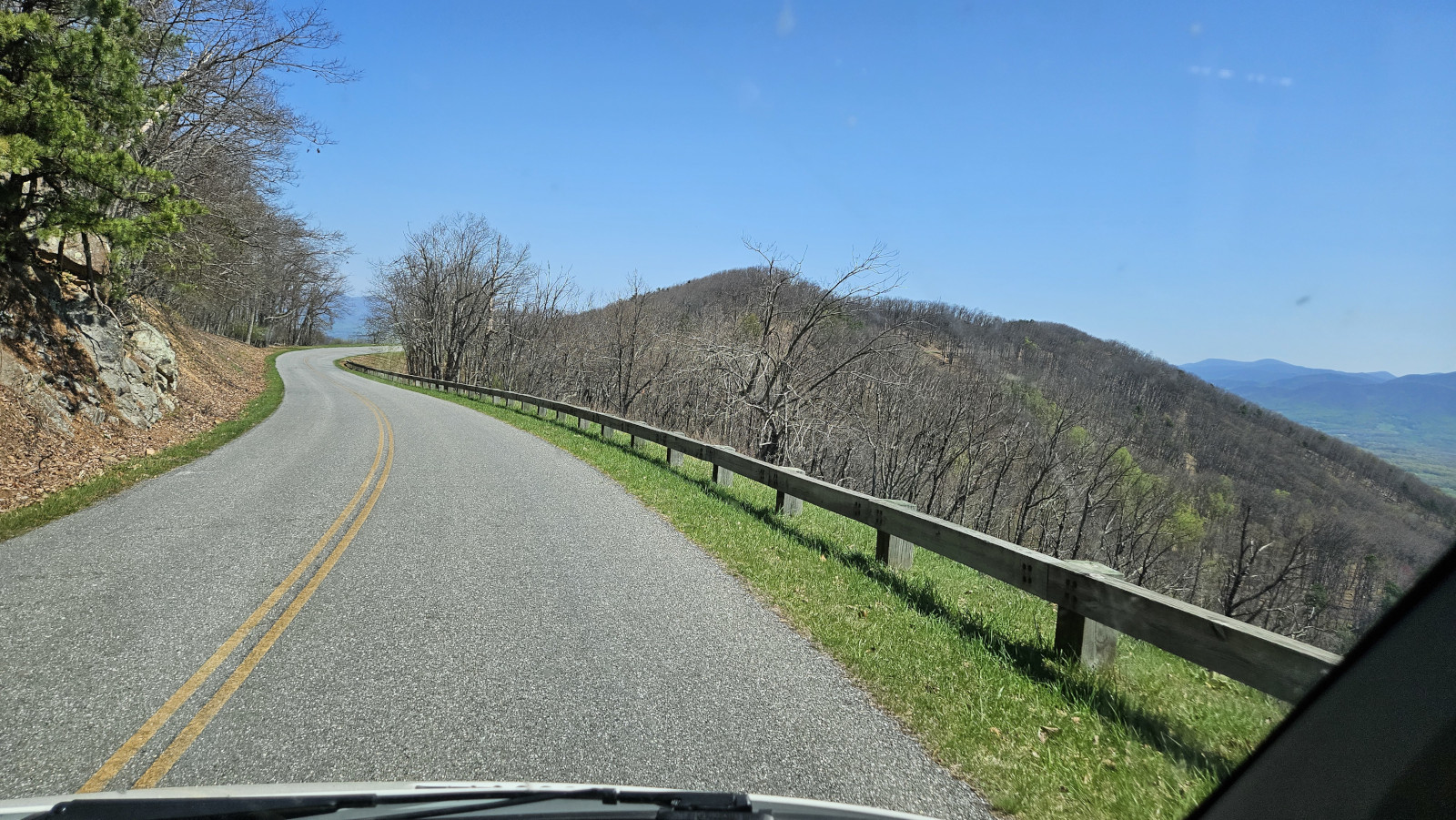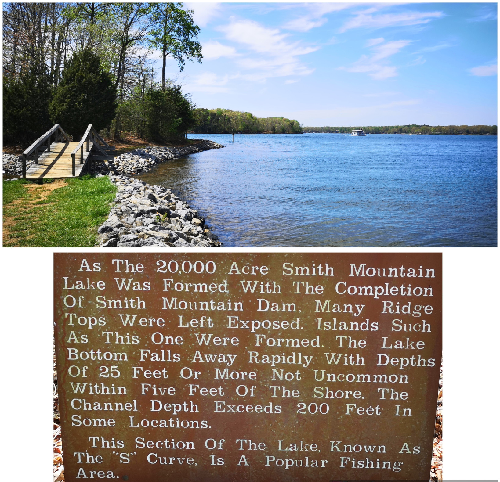 We had a beautiful day to continue our drive along the parkway and it meant we could see at all the overlooks. We could only imagine how gorgeous the Parkway must be in the fall with all the leaves changing colours. All along the Parkway you see worm or snake fences. The ends of the rails alternate, creating the openings. For stability of the stacked rails, each section of the fence is angled slightly from the previous one, giving the appearance of a worm or snake. This style of fence doesn’t require any vertical posts so it was easy to install and could go over rocky terrain. We covered about 70 miles on the parkway which takes a bit of time due to the 45-mph speed limit and with all the stops at the overlooks. Our destination was another state park off the parkway which was Smith Mountain Lake SP.
