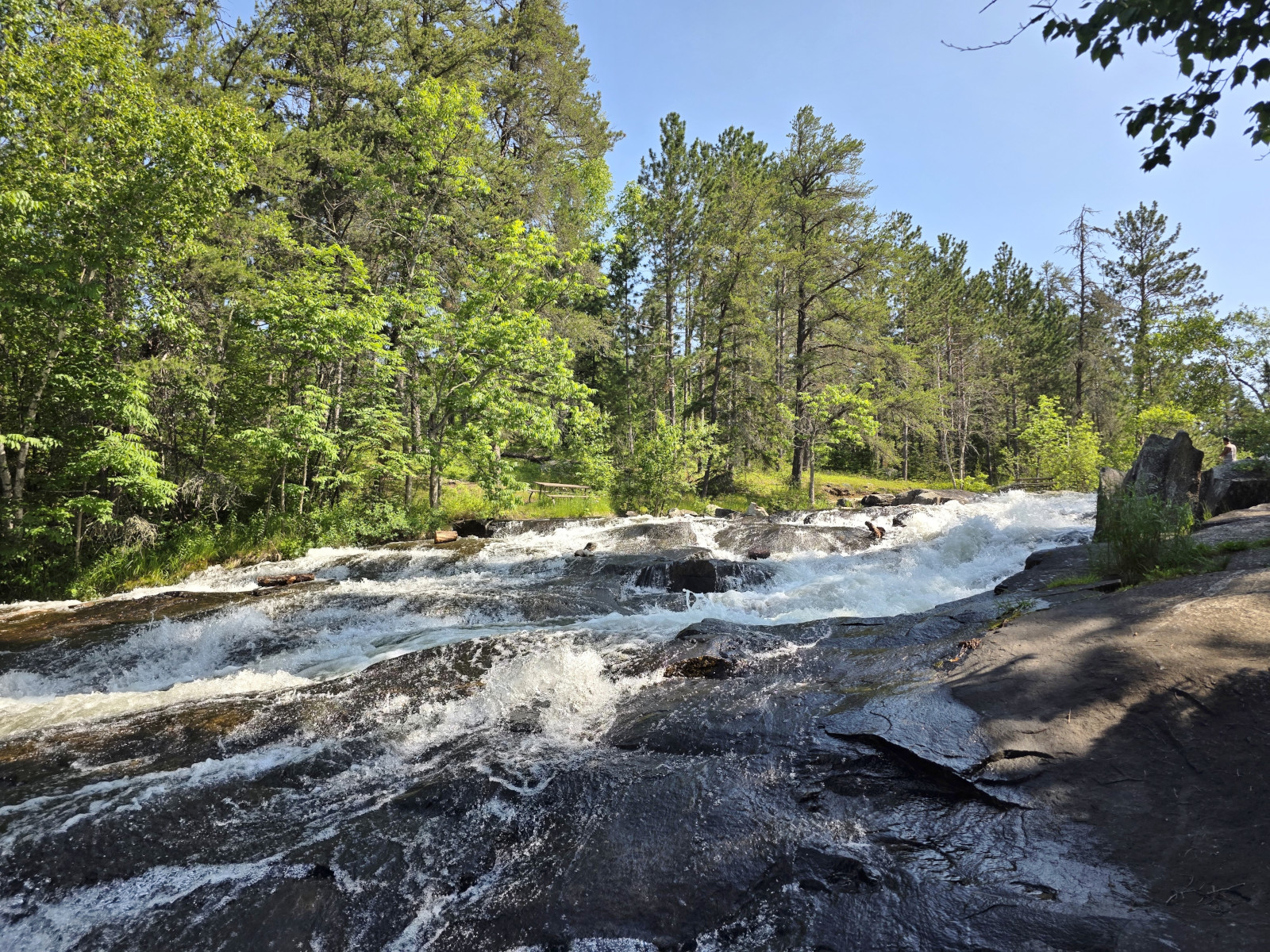 The next morning when we left, we dumped our tanks and then spent some time looking at the water falls along the Rushing River. It seemed like much more water than we had seen in the past.