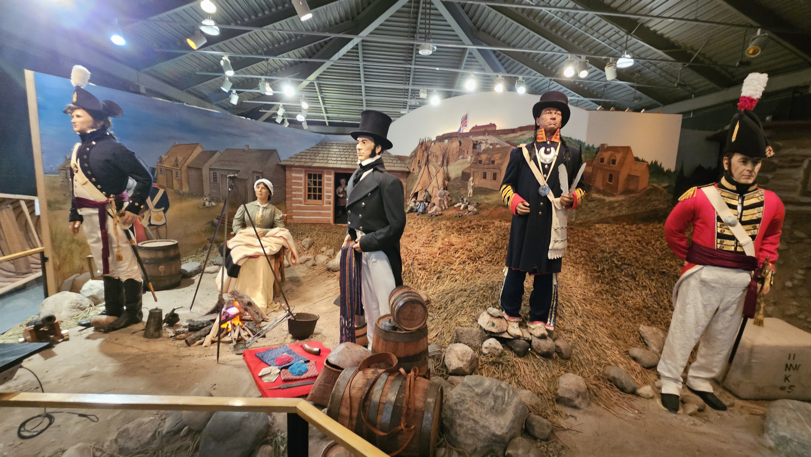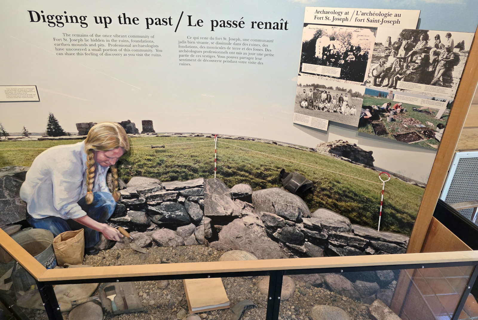 The displays in the museum were quite well done. After the museum we took the trail out to foundational remains of Fort St. Joseph. When we arrived at the demonstration area, they had just finished cleaning out the ashes from the bake oven as it had reached cooking temperature. The first thing the staff had baked was nutmeg biscuits which were very good. Later they were going to bake some bread. When we went to leave, they offered us some mud seed balls. They took clay and made it into a flat shape, mixed in some dirt, and then placed wildflower seeds in that dirt. Lastly you formed it into a mud ball and after it is dried out you can save it until you are ready to plant it. We got 2 seed balls they had made, and Sharon made a brand new one to give to her mom. Overall, this was an extremely interesting stop and well worth the extra 70 km drive.