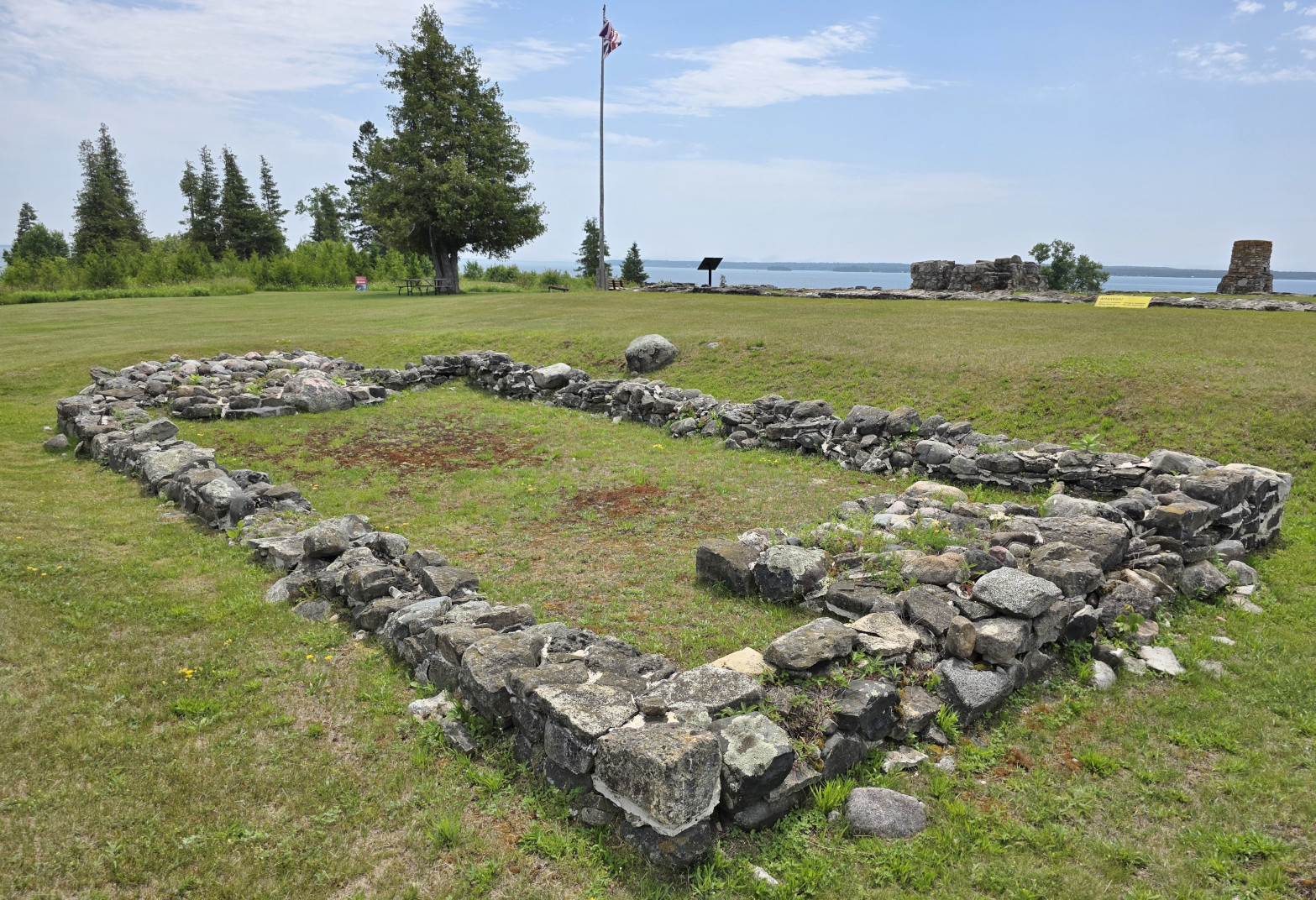 Our new experience for this day was to visit St. Joseph Island and the National Historic Site called Fort St. Joseph. It’s roughly a 35 km side trip one way to go to the Fort and that had been why we hadn’t tried it in the past. However, our destination for that night was Pancake Bay PP so we had the time to do this new stop. The other benefit this summer is that National Parks and Historic Sites are free to visit from now until September 2nd, bonus! This site had park staff in period costumes, a documentary about the history in the theatre, a museum, and the outside grounds where the foundations of many of the buildings were still there. Here are the key facts about this fort: