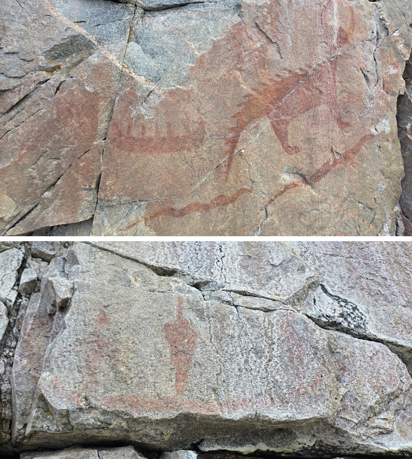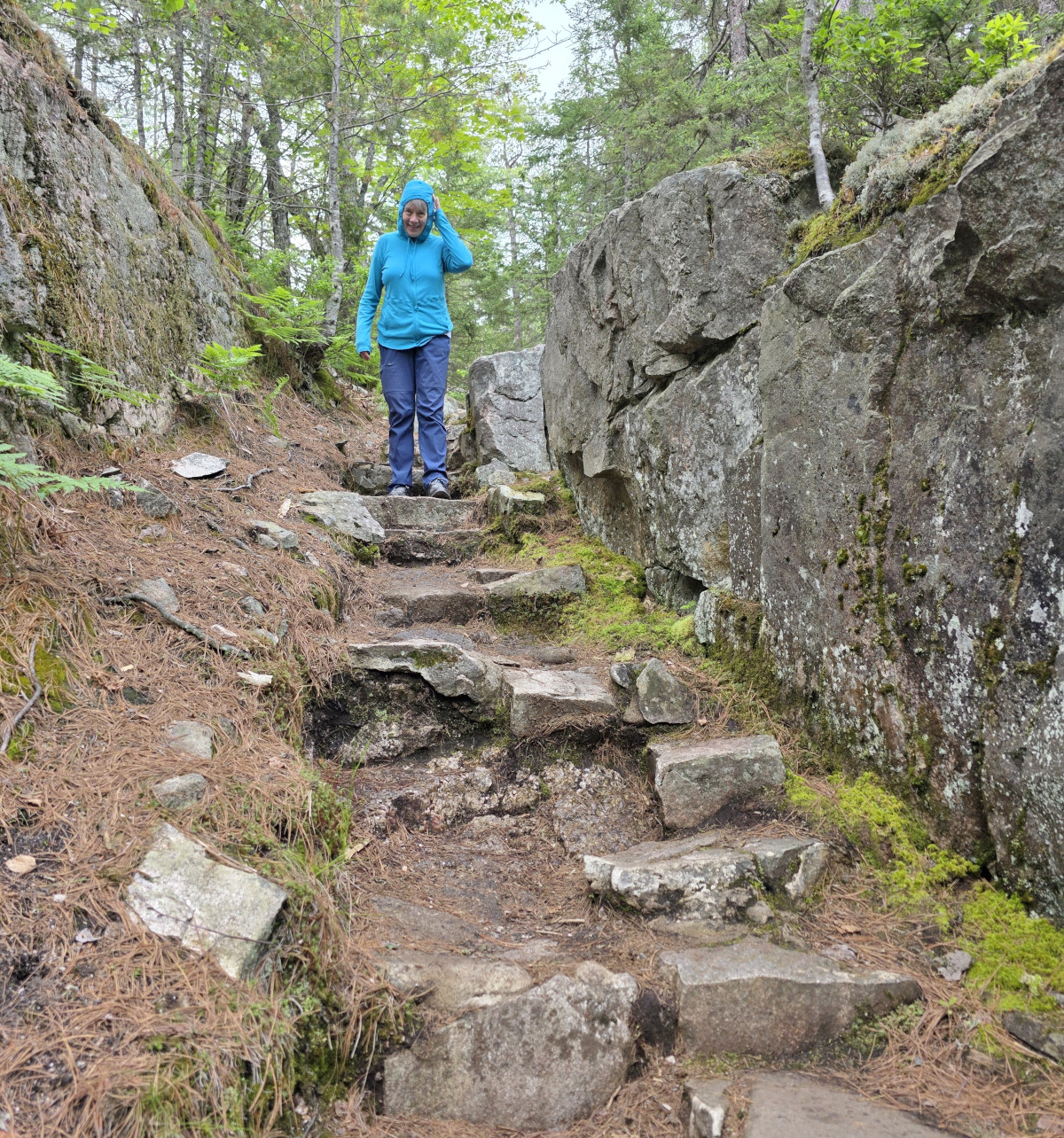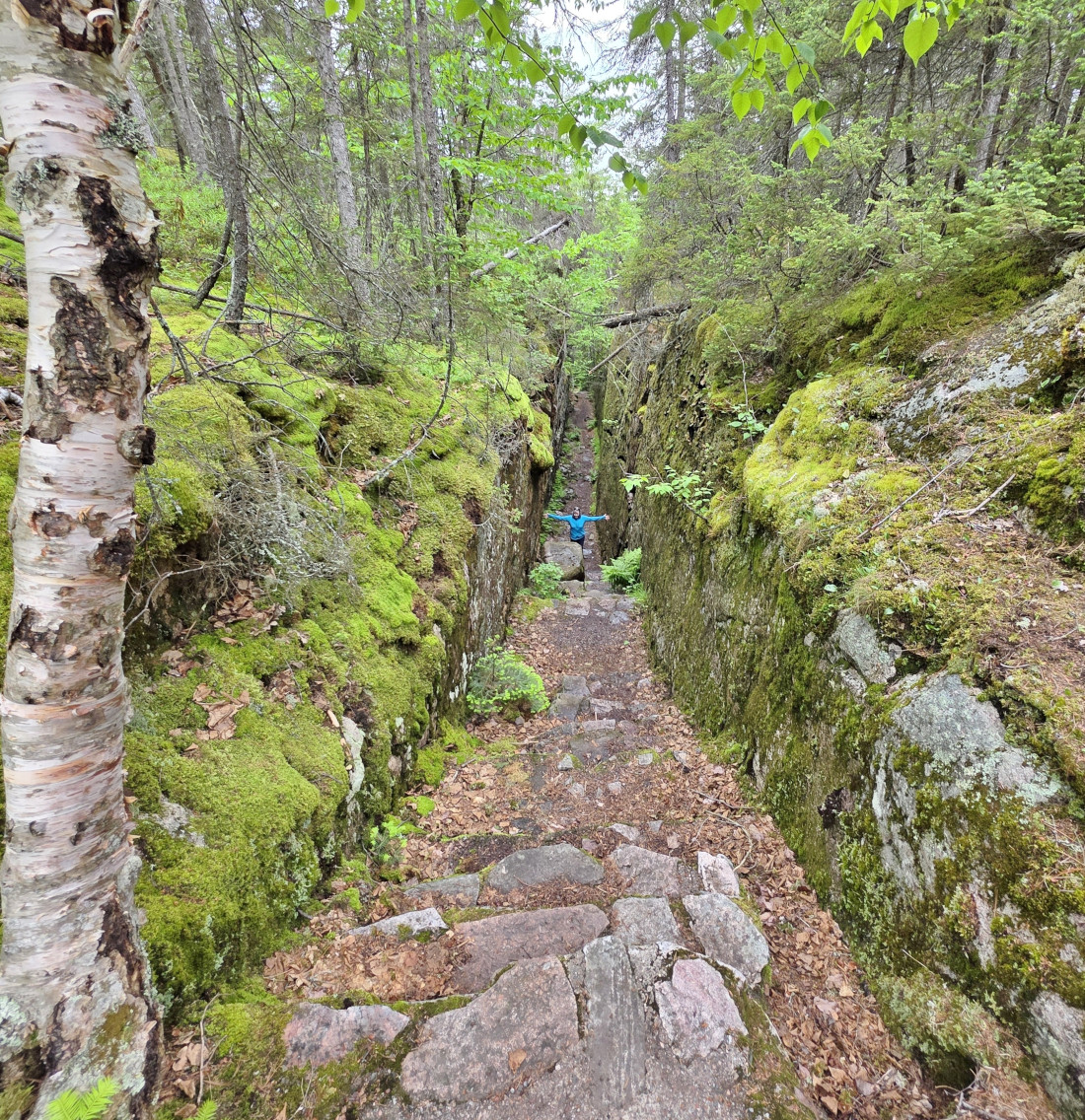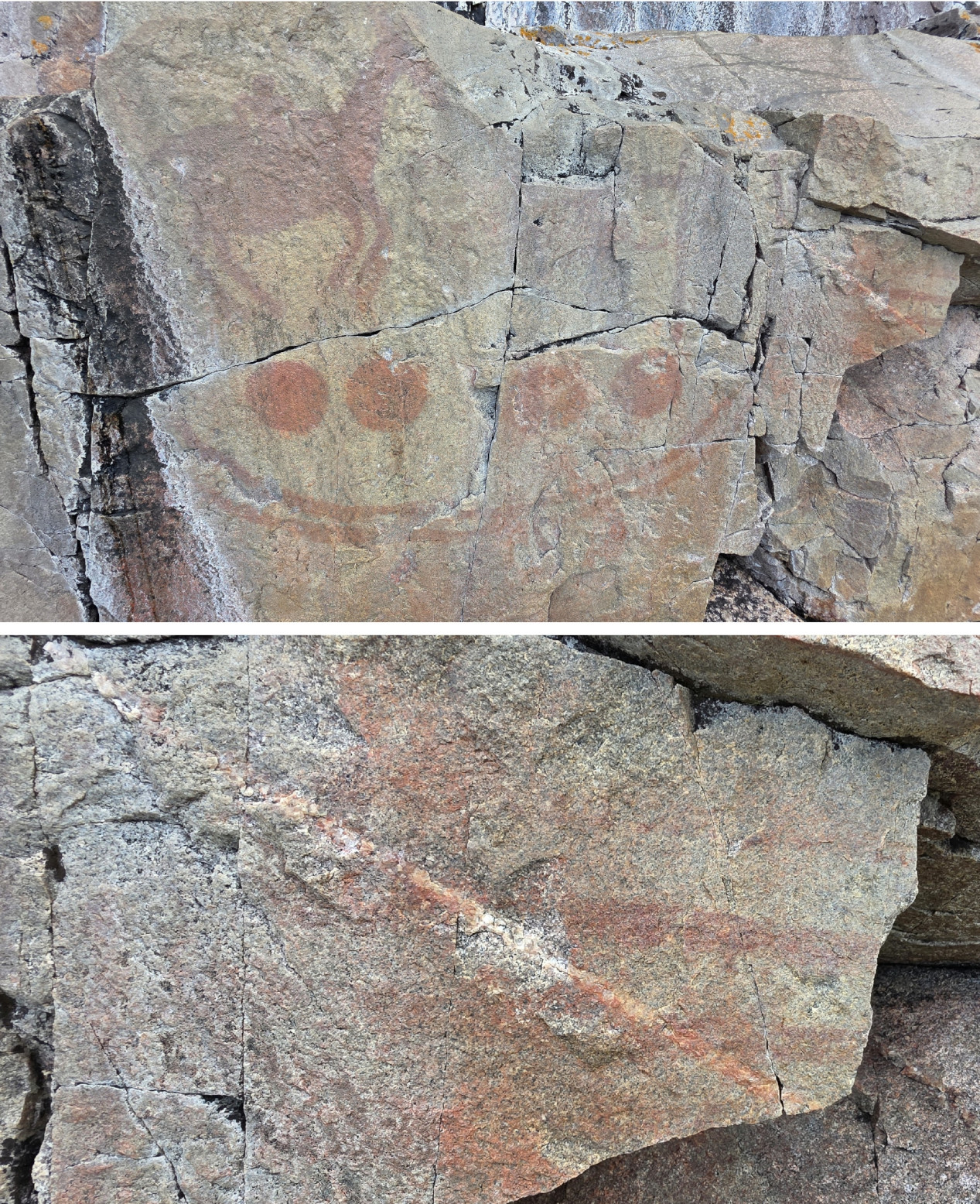 The next day was the pretty drive through Lake Superior PP, and we decided to stop at the Agawa Rock Pictographs since we hadn’t been there in awhile. There were only a couple of other people there, so the mosquitoes were anxious for their breakfast😉 The hike is a short scenic loop through some rock crevasses until you reach the rock wall where the pictographs are located. The Ojibwe people painted the pictographs of mystical beings, animals, and humans, and they are believed to be from 150 to 400 years old. You need a calm day to walk along the rock wall because the Lake Superior waves can crash up against the surface. They have some chains, ropes, and anchor pins to help you traverse the wall. We were able to see most of the pictographs without getting wet or slipping.