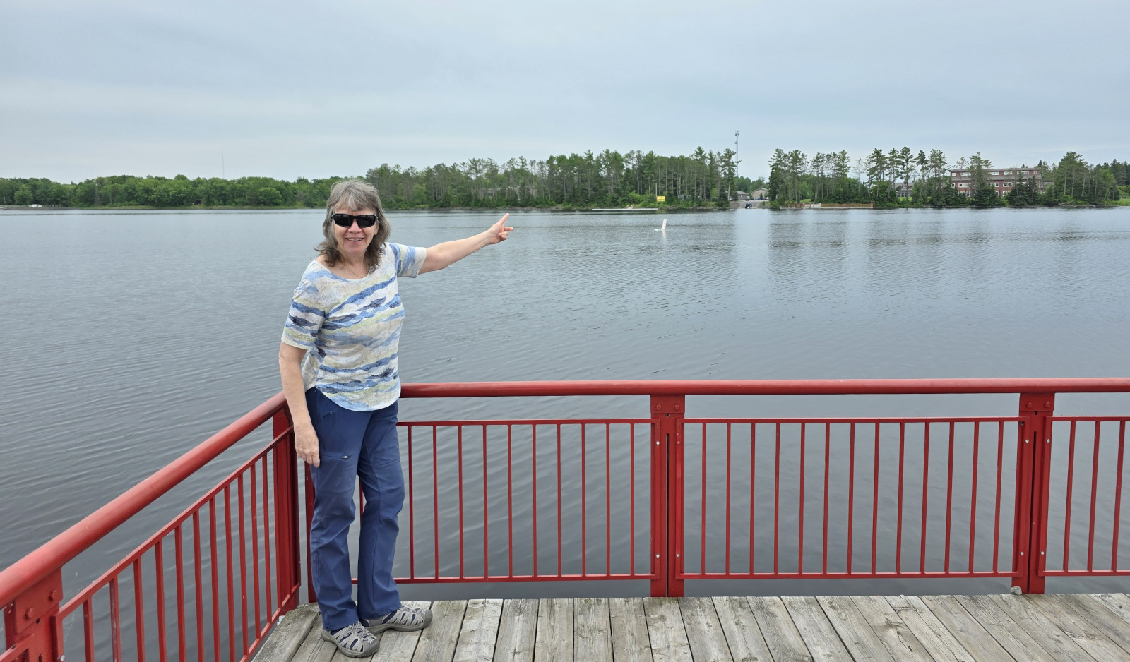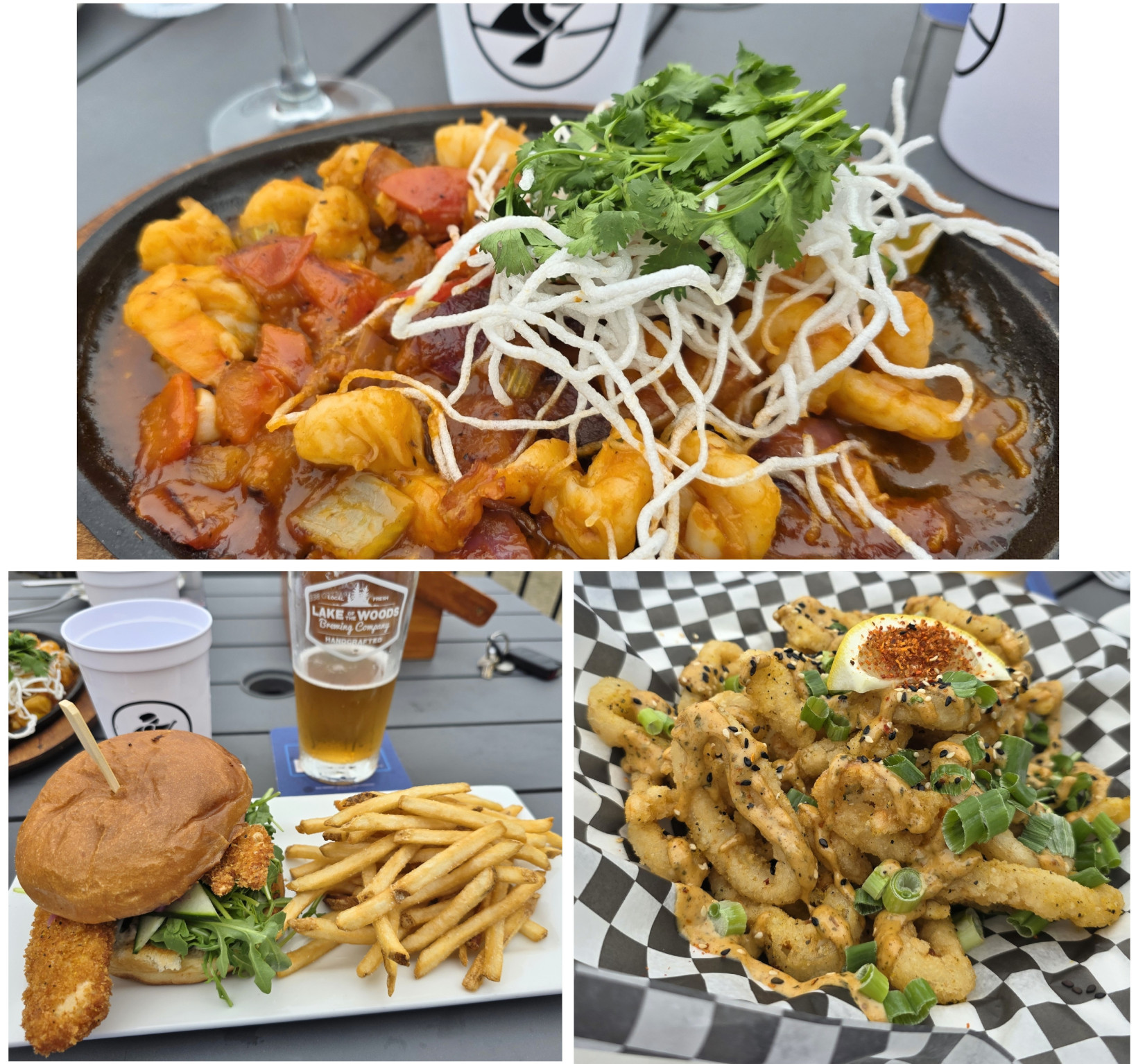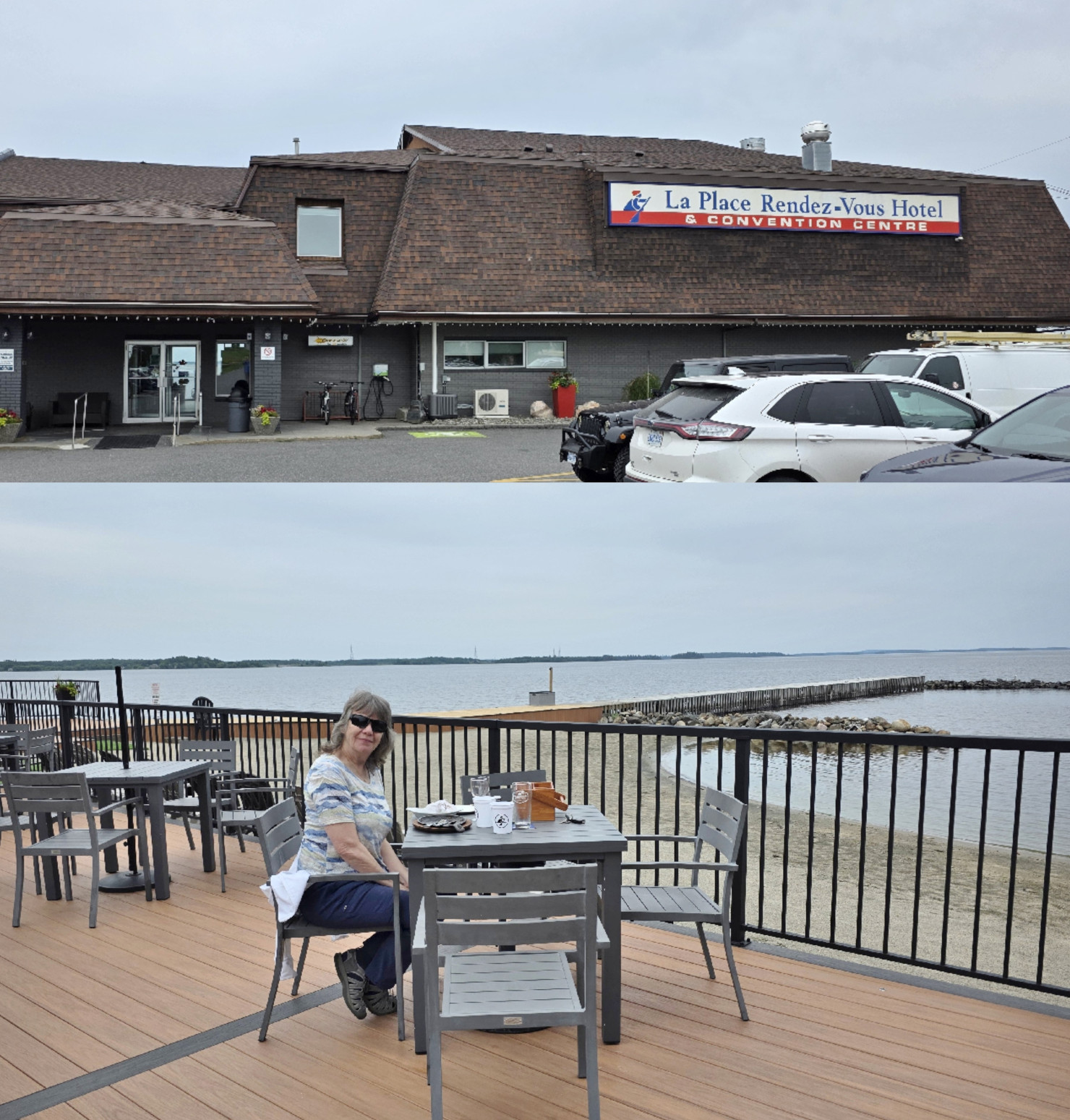 There was very little traffic on the Highway 11 southern route the next day except for logging trucks. We decided to stop for lunch in Fort Frances and went to La Place Rendez-Vous since it was right along the water. They seemed to be well underway with a massive renovation and had a brand-new composite deck right along the water. Most people seemed to be eating inside but we chose the water side. We shared calamari which was excellent, and I had the Walleye fish sandwich, and Sharon Sizzlin’ Gambas (shrimp). We would stop here again.