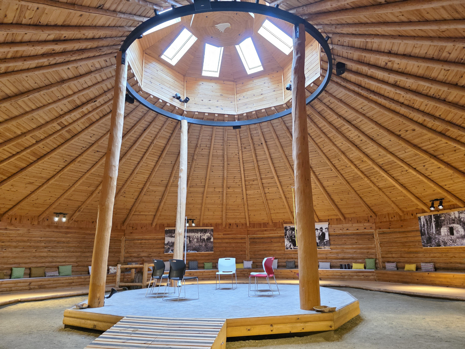 On our return trip we stopped in the round house to look inside. They hold communal gatherings in the round house and had pictures of the guides ancestors. She was a descendant of the Chief that signed the original Treaty 3 in this area. Once back at the centre Sharon went to the restaurant to buy a takeaway portion of the Wild Rice soup and some Bannock so we could try that later. Again, this was another worthwhile detour from the normal route.