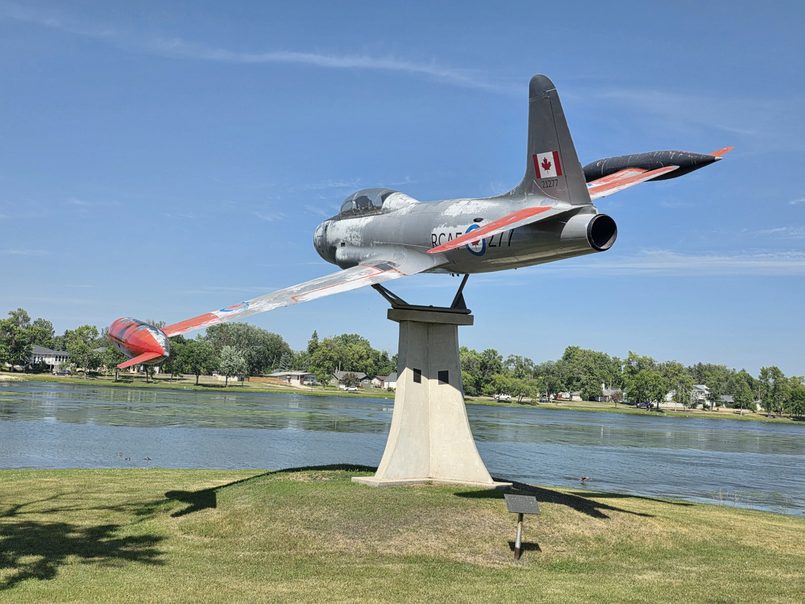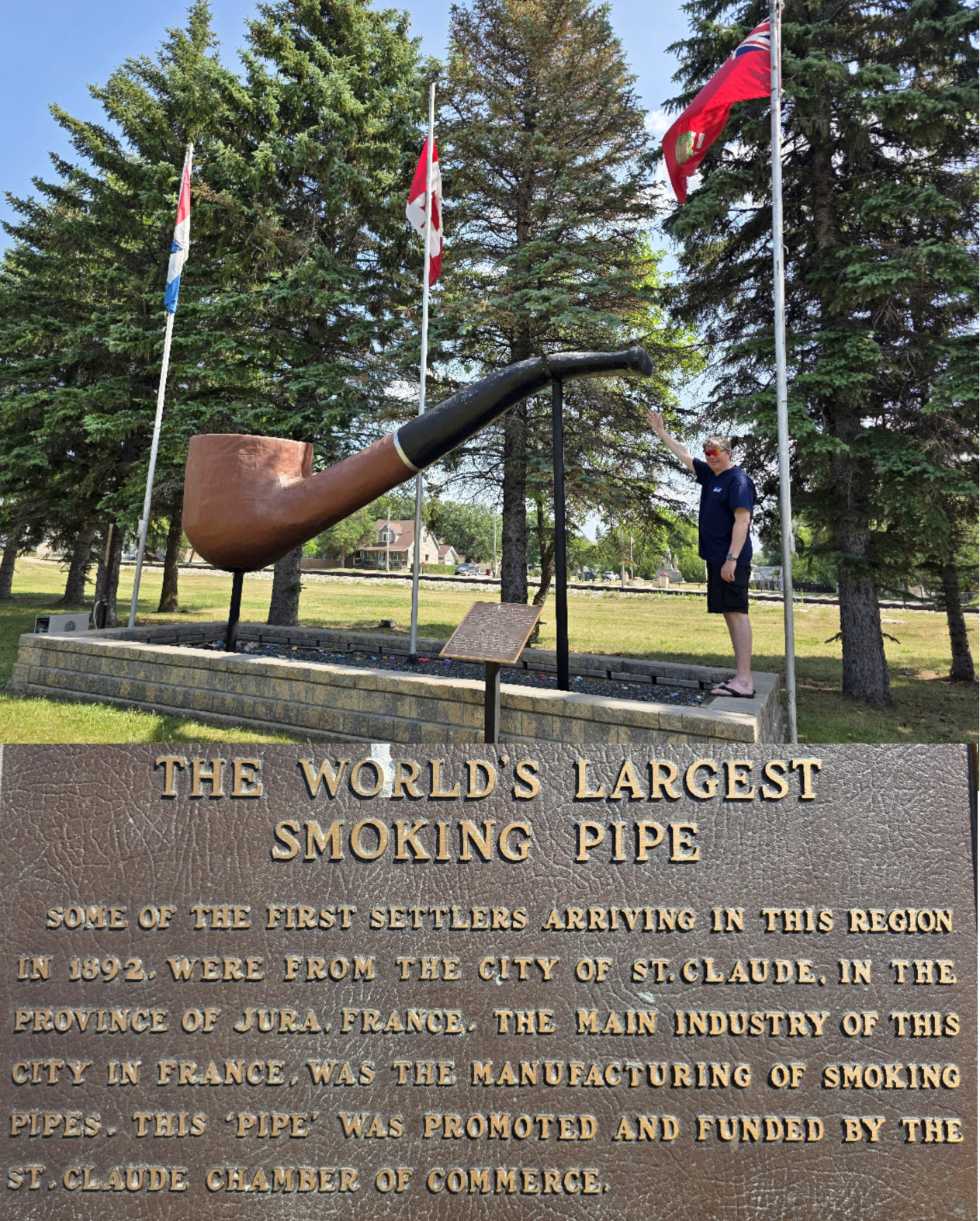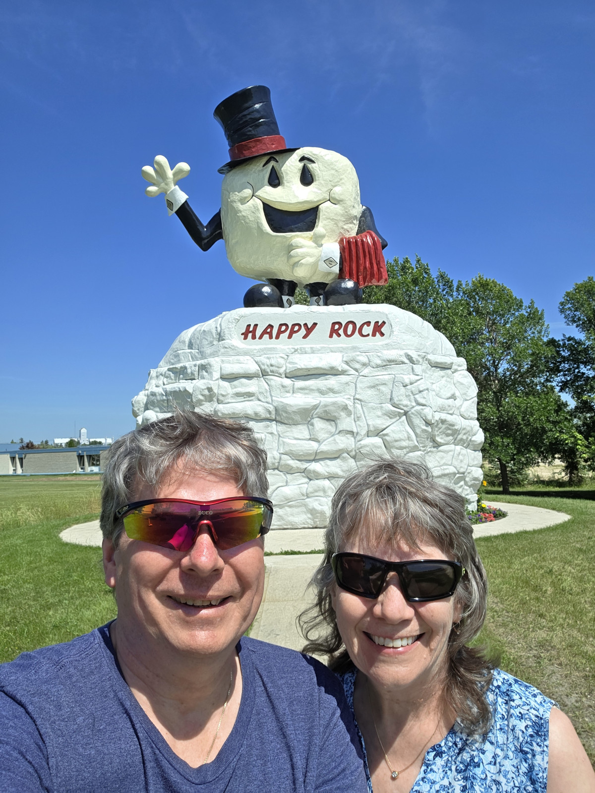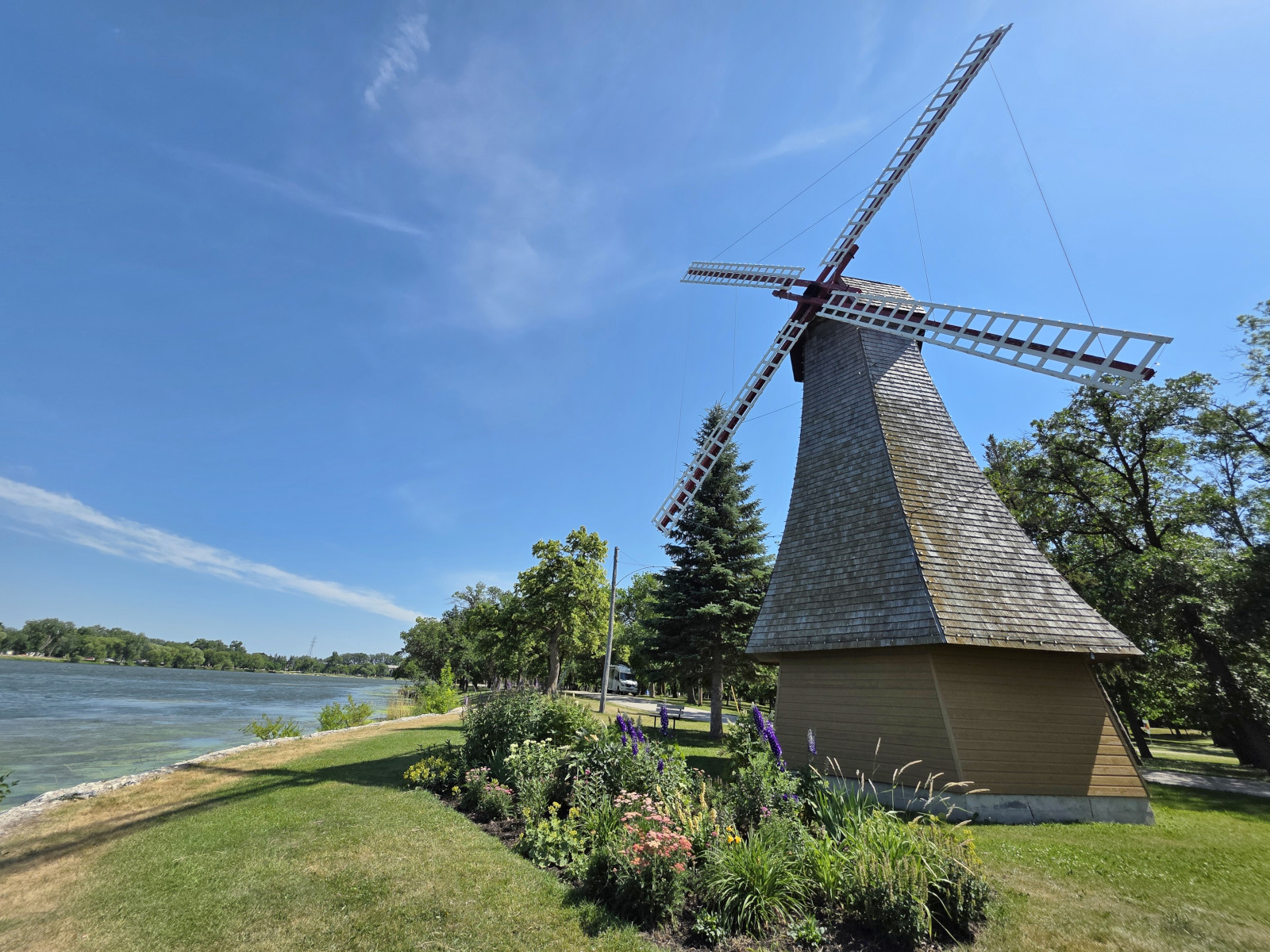 The following day we were returning to Winnipeg but again had some stops along the way. First was Minnedosa to see the Lions Lookout Tower and the Swing bridge in the Heritage village. We also saw the outside of the Octagon Agricultural Display building which is one of only 2 left in Manitoba. Next was Farmery Brewery in Neepawa where I tried a flight of beers while Sharon tried some canned Caesars with different flavours. We bought lots of products here as they no longer sell in Ontario. Further in the town there was a restaurant called Brews Brothers Bistro so I thought we should go for beer and lunch, but it turned out Brews was for coffee not beer😉 Our lunch was very good with Sharon having the Perogy pizza while I had the Smoked Brisket Burger. We stopped in Gladstone to see Happy Rock which seemed to have a fresh coat of paint. The last stop before Winnipeg was Portage La Prairie so we could see the Windmill, the Canadair CT-133 Silver Star training plane, and the birdlife on the lake.