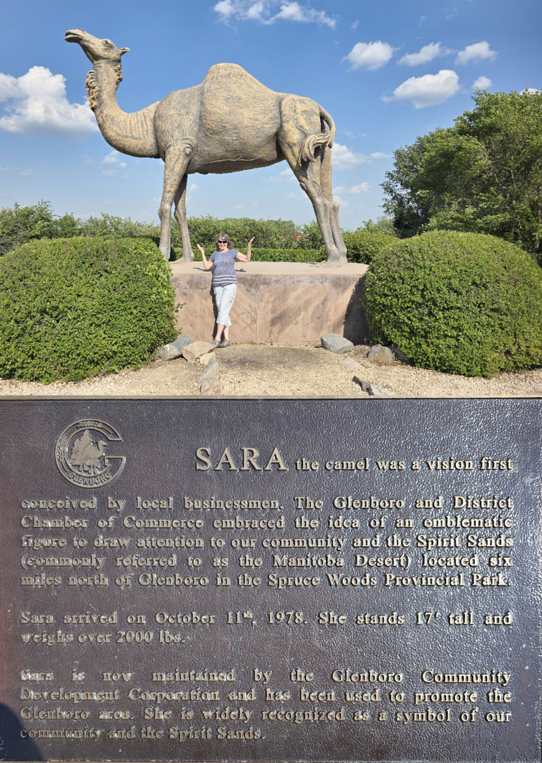We spent the weekend in Winnipeg visiting Sharon’s family and then started the trip further west for the reunion. Our first destination was Spruce Woods Provincial Park but along the way we had to stop to see several touristic sites in the small Manitoba towns including: the world’s largest fire hydrant, largest smoking pipe, the glass bottle houses (made from thousands of whiskey, rye, wine, rum and gin bottles), and Sara the Camel.