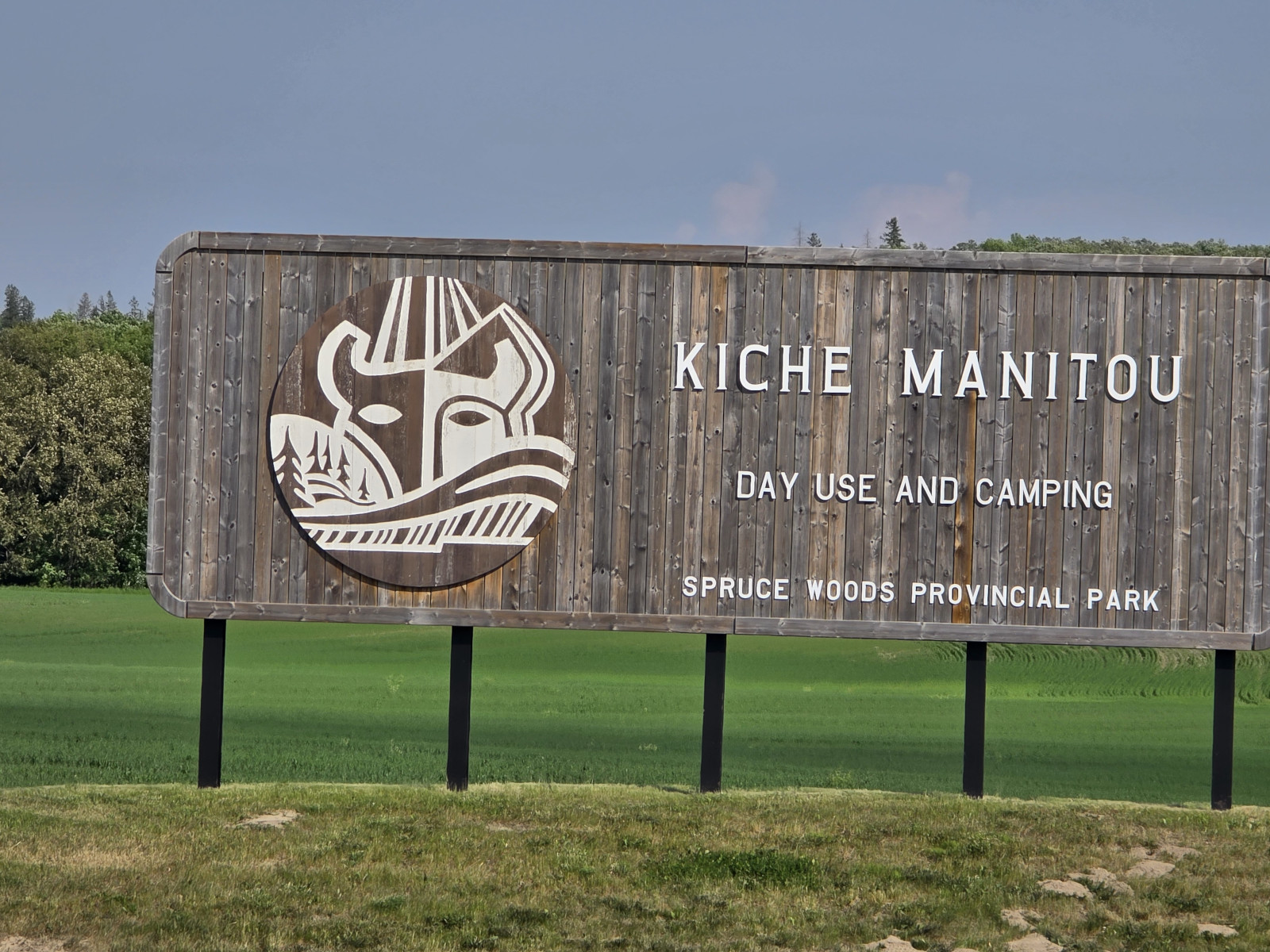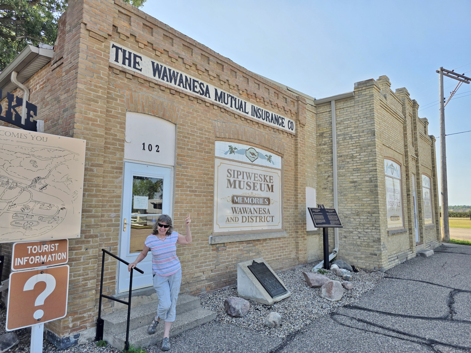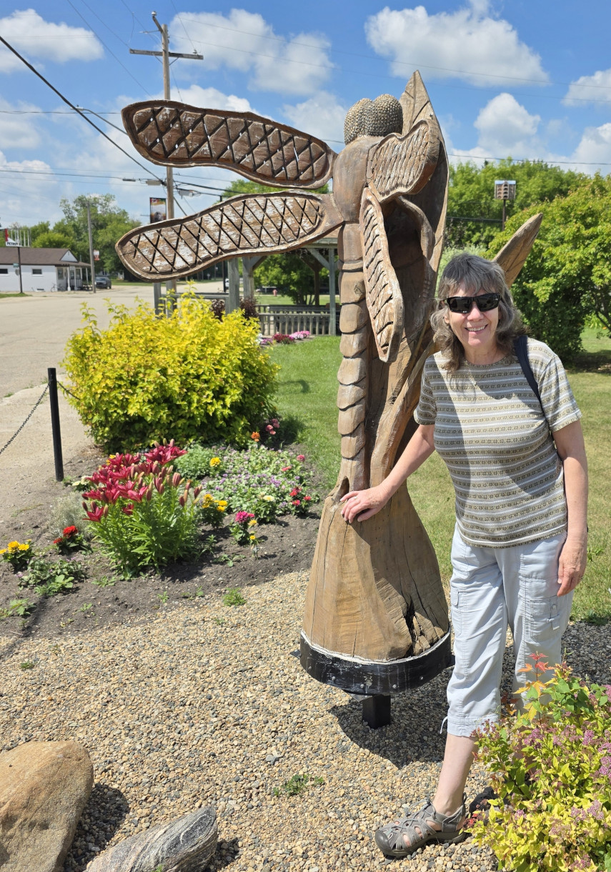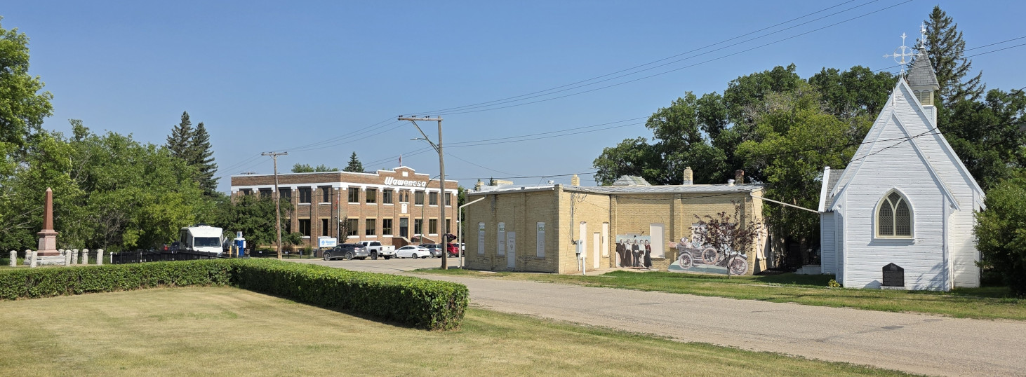 Our next destination was Crooked Lake PP in Saskatchewan but on the way, we made several stops to see new things. The first stop was the town of Wawanesa because it was the place where our RV insurance company started it’s operations in 1896. The original building for the insurance company was built in 1901 and is now a museum but it wasn’t open the day we arrived. We met a local town councillor, and he was very happy to let us know what to go and see in the town, including the tea house where we could buy freshly baked large cinnamon buns. We also saw the Anglican Church built in 1882, it is the second oldest church in western Manitoba and was declared a provincial heritage building in 1991. It is the best example in Manitoba of an elaborate high gothic revival church built of wood.