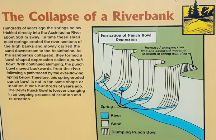 After we checked into Spruce Woods PP, we setup in our campsite (which was surrounded by Poison Ivy) and then went for a walk around the campground, the beach area and then Isputinaw Trail which climbed from the marsh up 30 metres to a lookout and ridge. The following day we got an early start so we could do the Devil’s Punch Bowl hike in the Spirit Sands section of the park. The ranger had warned us to start early which was a good thing as the daytime temperatures were climbing to 35C! We got the 10 km hike through the forest and desert completed in the morning and it was a good thing we brought lots of water with us as one couple had run out and we had to give them some of our water.