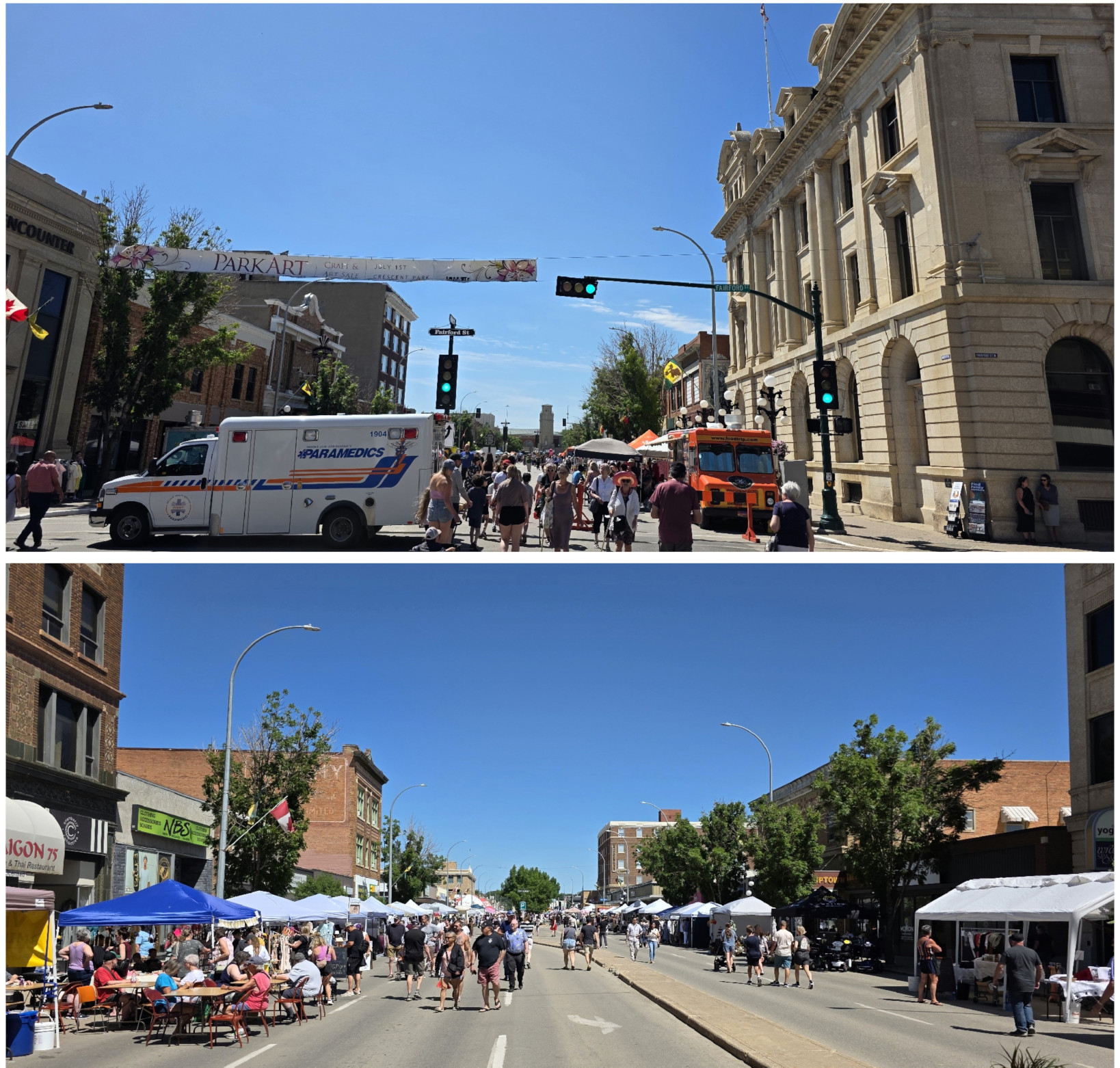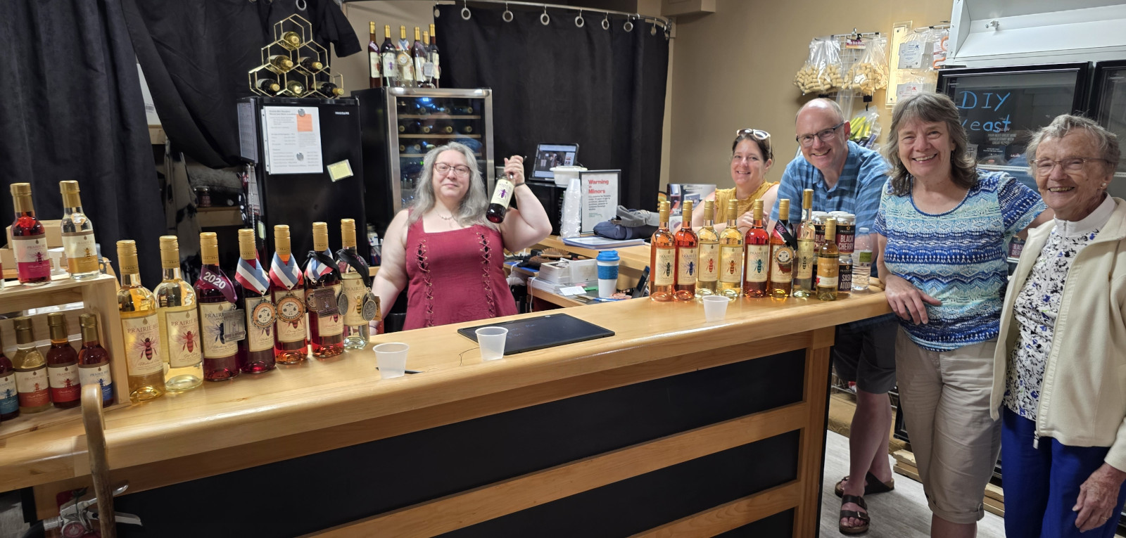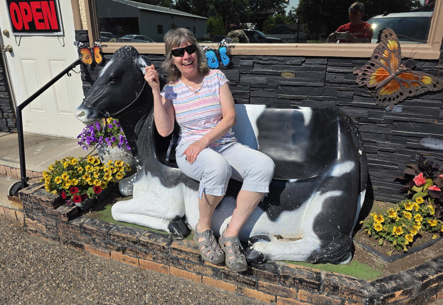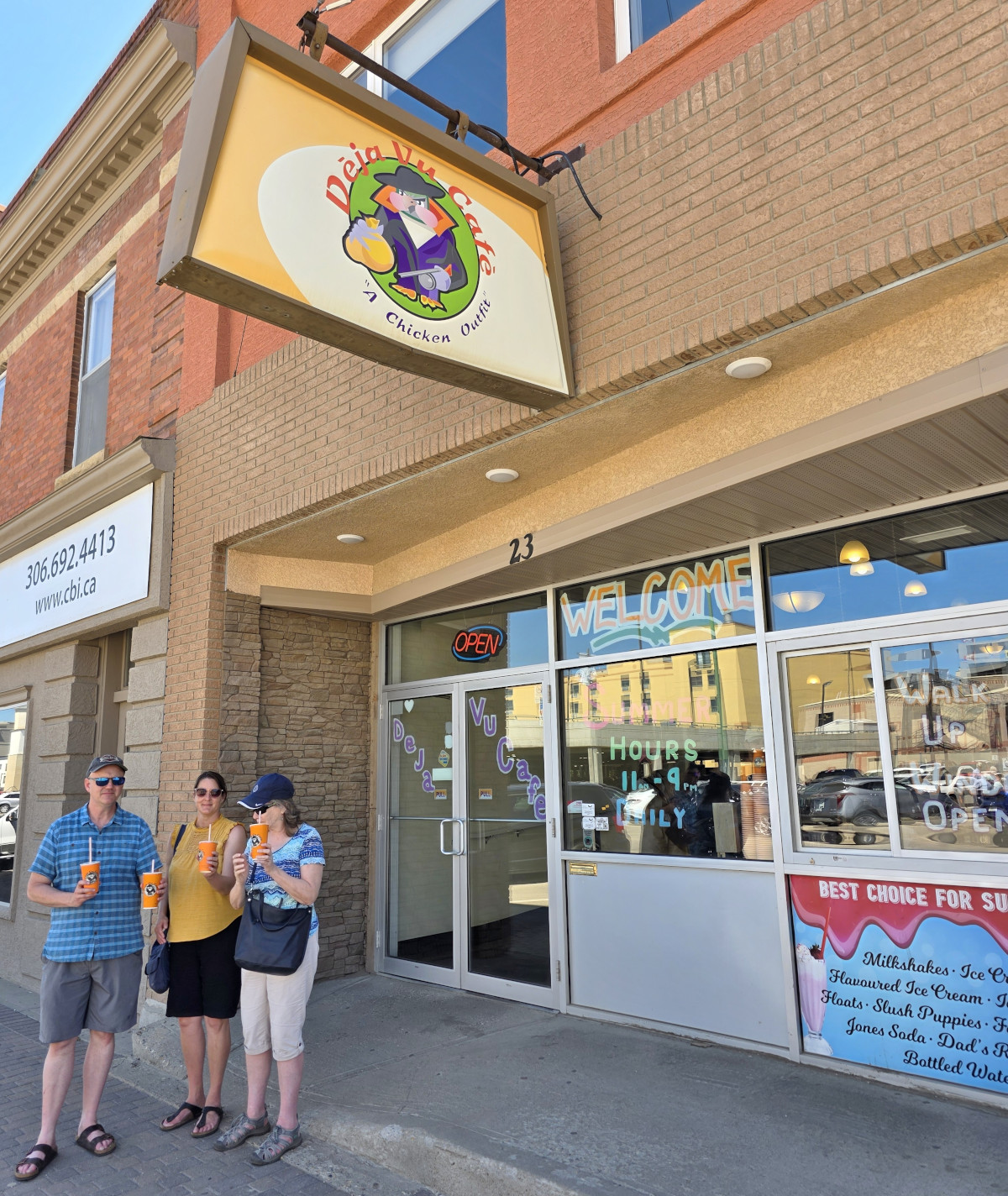 The next day we started off with a big breakfast at Veroba’s Family Restaurant. As it turned out Moose Jaw was also having their annual Kinsmen Sidewalk Days Festival, so we got to walk the main street to see all the vendors along the 9 blocks that were closed off. It was a hot day again, so we took the opportunity to go inside the Grant Hall Hotel (opened in 1927), in the basement was Prairie Bee Meadery. The salesperson had lots of history to tell us as we sampled 14 different products and of course purchased several of them😉 Sharon had heard about a place called Déjà vu Café that had 80 flavours of milkshakes and had been featured on the TV show called “You Gotta Eat Here” so we went to try them out. I had the Habanero Milkshake, and it was surprisingly good. In the afternoon we spent more time in the Spa pools and also tried out the steam room. That evening we tried out Nit’s Thai Food and it was excellent for dinner. We had fun with the waitress as she acted like an Elephant when we ordered the Chang Thai beer (has 2 elephants with locked trunks on the label).