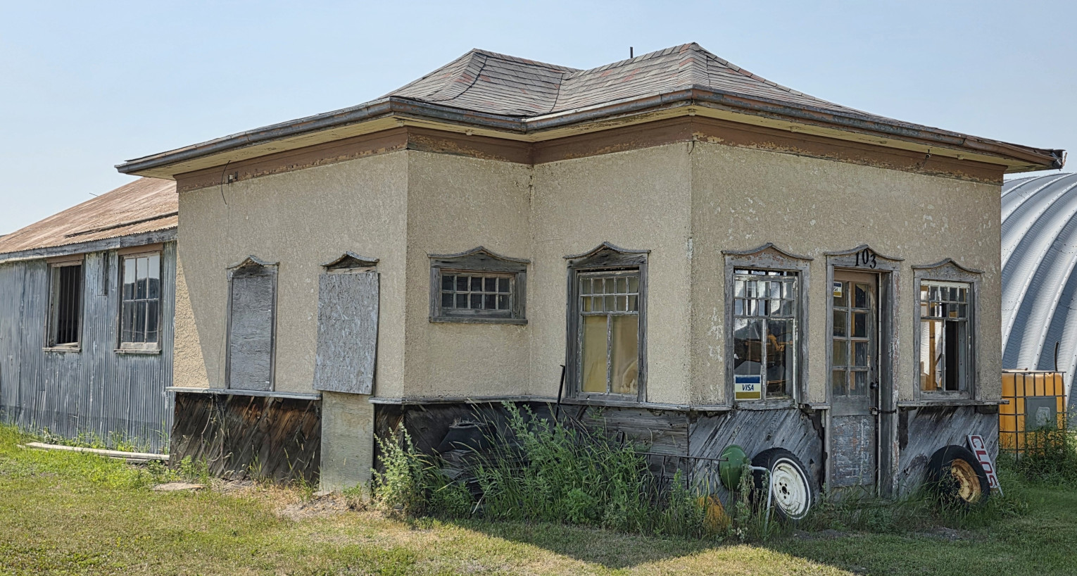 Our final camping destination for this leg of our journey was Rivers PP in Manitoba. Enroute we stopped in Maryfield Saskatchewan for lunch at the Arlington Hotel and to buy some groceries at the general store. Then we stopped in Virden Manitoba to see the old train station. On the way to Rivers, we saw some typical Prairie grain silos/elevators which are the symbols of rural heritage in western Canada.