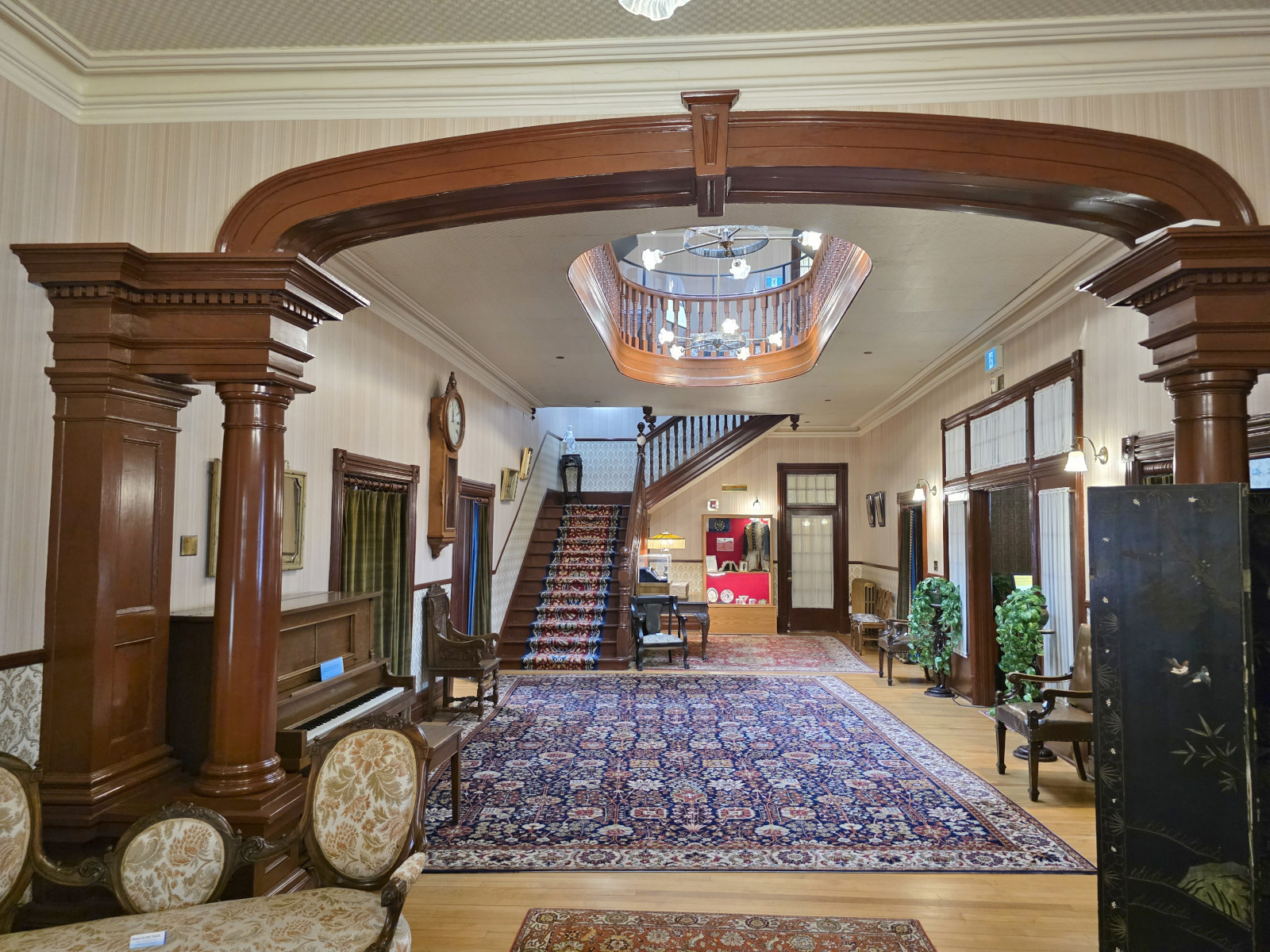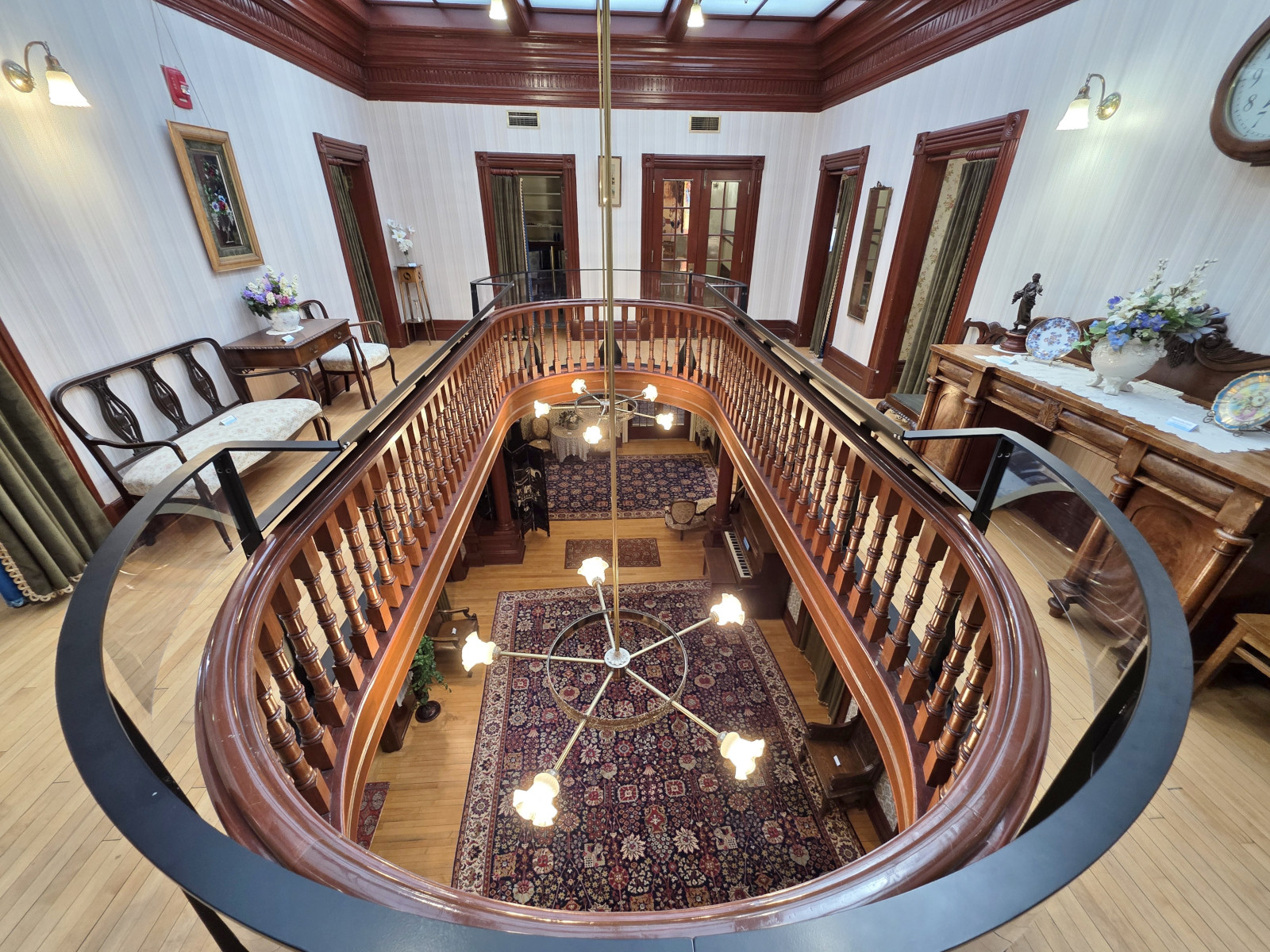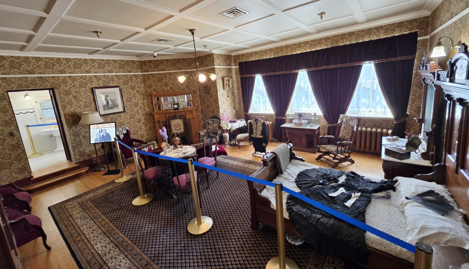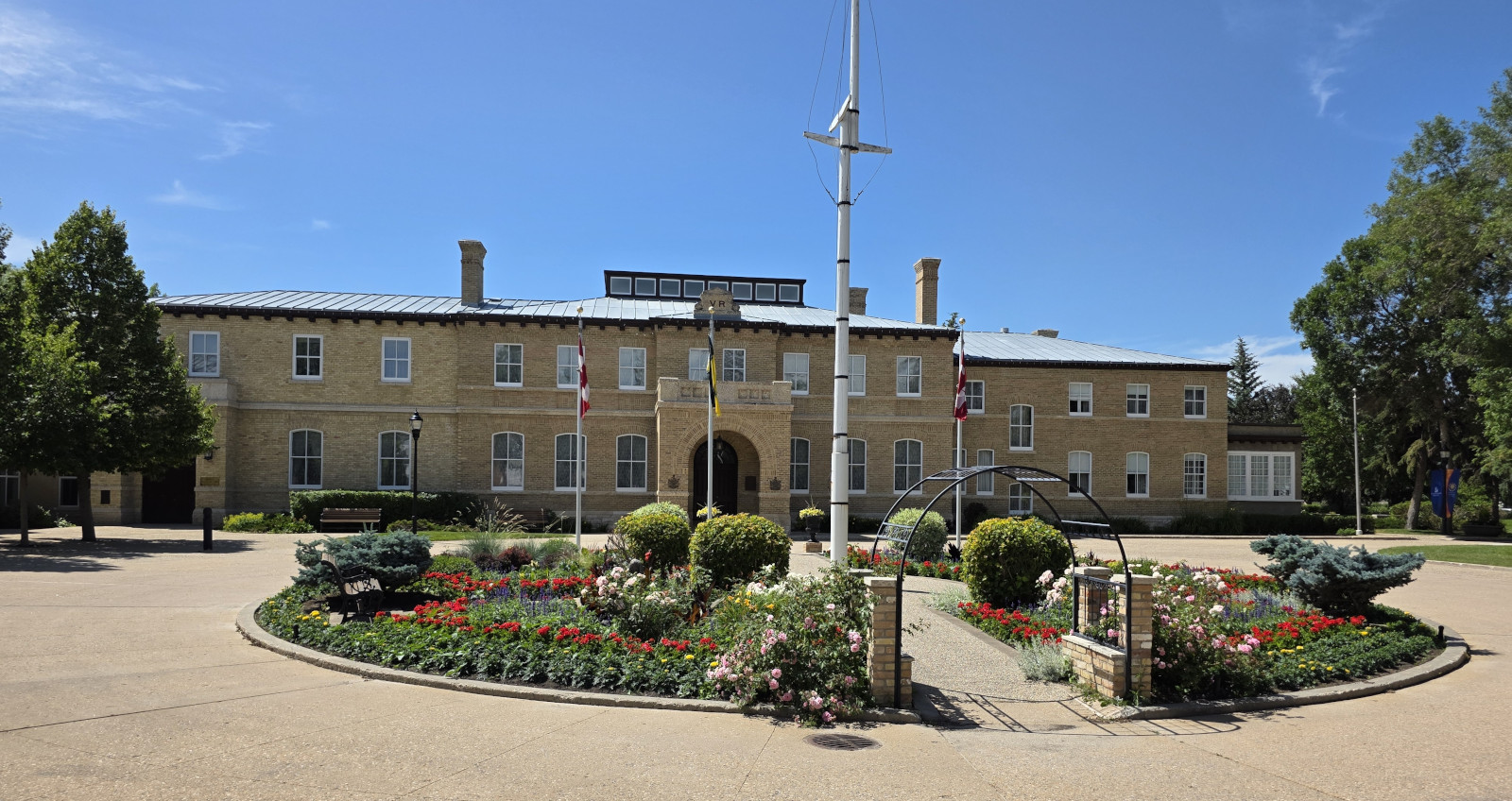 The next day we were heading on to Regina. This time of year, it’s quite pretty to travel in the prairies as the canola crop is in full bloom. It was a very hot day at 37 C, so we were glad for the AC in the RV. Our first stop was to visit Barb and John, and we went out for a poutine lunch at the Coney Island Café. I had the Mexican Poutine and Sharon had the Perogy Poutine and needless to say we took away lots of leftovers😉 After lunch we did a quick tour of Government House which was just down the street. Government House was declared a National Historic Site in 1968. A full restoration of the house started in 1978 and was completed by September of 1980 when it reopened. In 1984 Saskatchewan’s 16th Lieutenant Governor was able to move back into the house. They do tours on the hour but we didn’t have time for the full tour so the guide gave us a very quick walk through so we could take pictures. We should return the next time we’re in Regina for the full tour.
