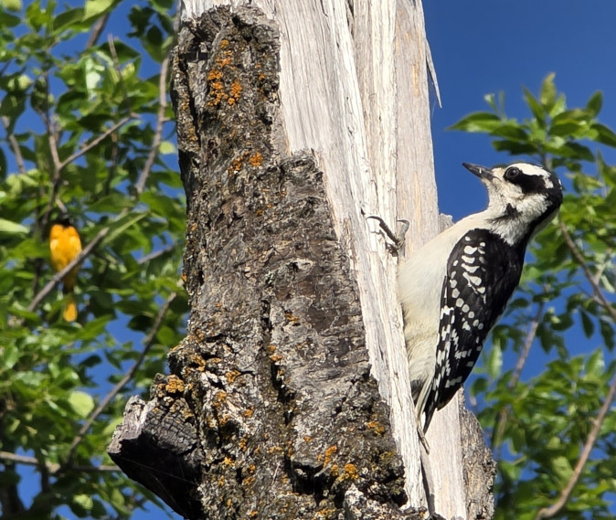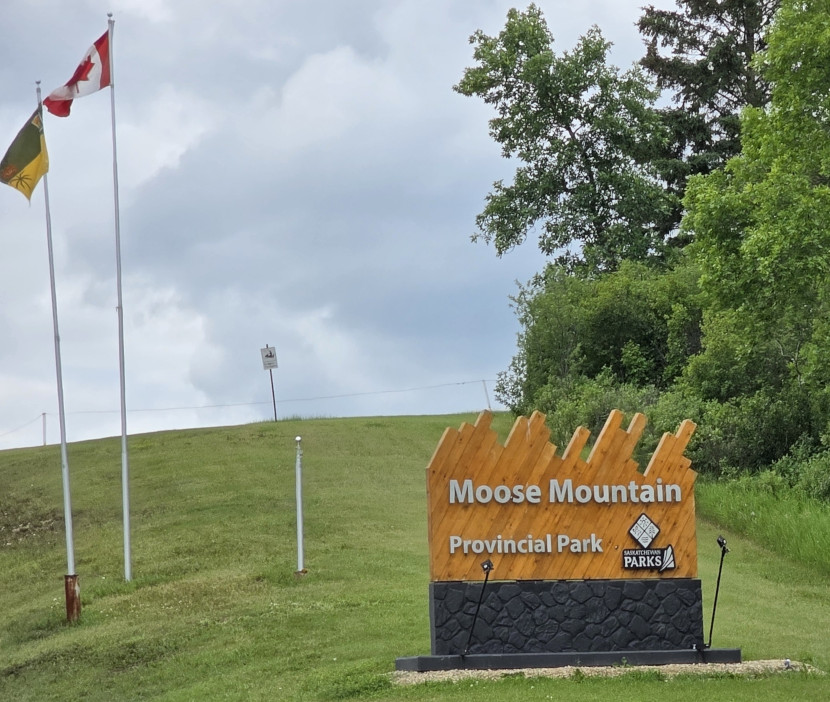 We were going to Moose Mountain PP for a 2-night stay. It was the first Provincial Park in Saskatchewan when it was established in 1931 and contains 400 square kilometres of forested hills, lakes, and prairie grasslands. It reminded us of Falcon Lake where Sharon’s parents used to have a cottage as the campground is nestled in amongst the cottage/home residences within the park. The park seemed to be very full since this was the first full week in July. After setting up we did a short hike on the Peninsula trail, and we regretted not taking our bug spray as the mosquitoes were having a hay day getting our blood. However, we did get nice photos of a Northern Pearly-eye butterfly, a Hairy woodpecker and a Baltimore Oriole.
