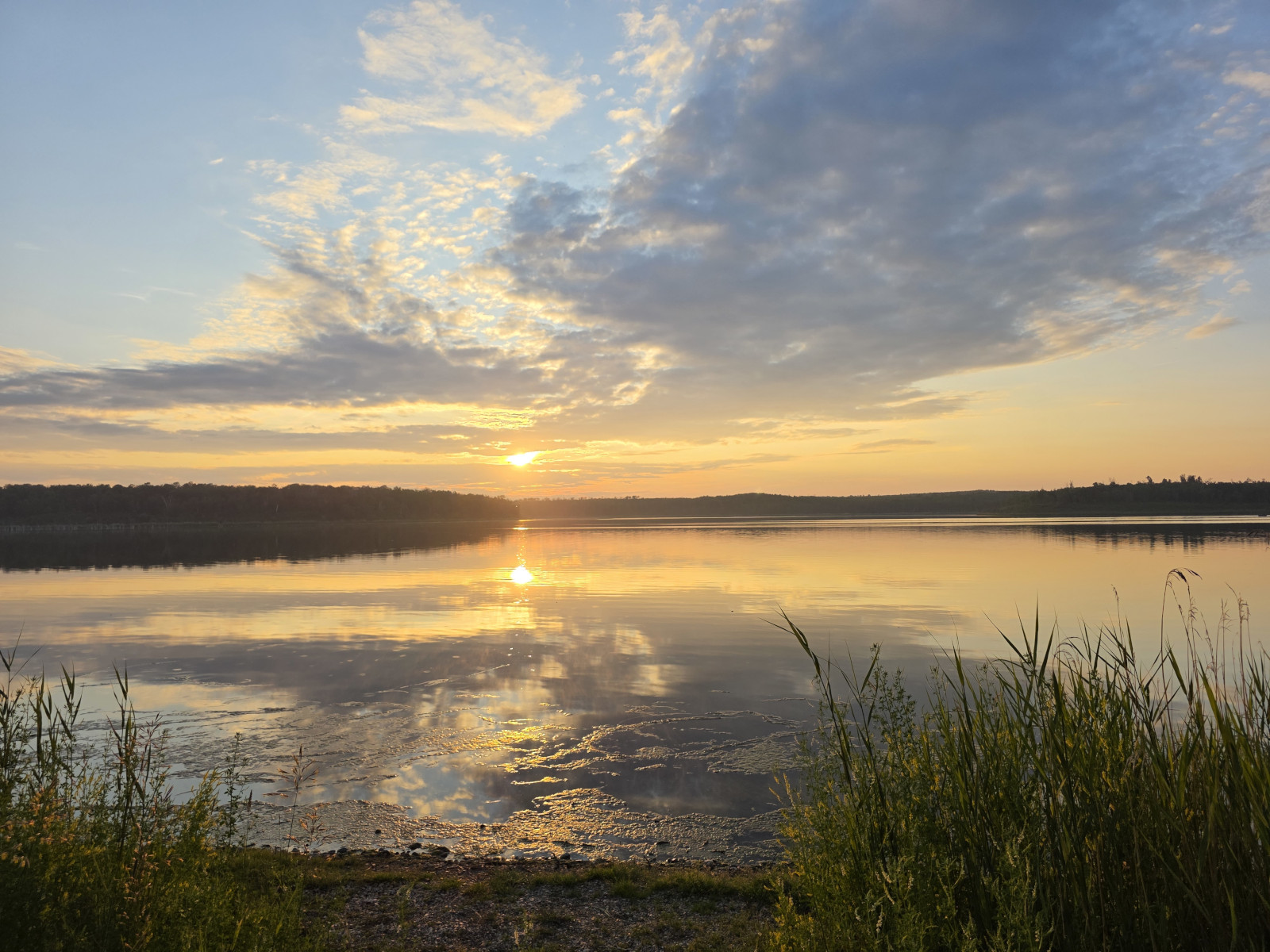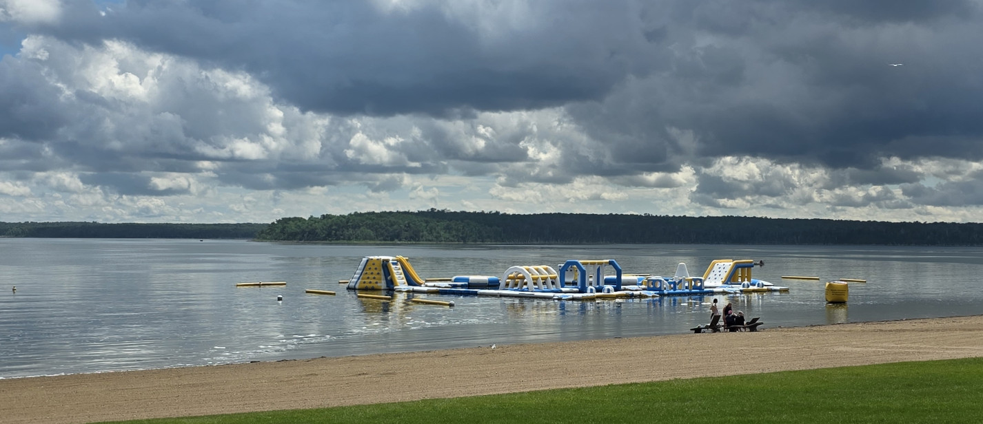 After the visitor centre we decided to try an MTB ride on Beaver Lake Trail and Youell Lake Trail. The conditions were muddy from the morning rain but it was fun as there were a lot of up and down sections. Hard work on the climbs but maximum speed on the descents. We brought our bug spray today, so we didn’t have any issues with the mosquitoes. We only saw 3 other people on the trails. On the way back to the campground we rode through some of the cottage streets and there were some pretty impressive places. We had lots of mud to clean off the bikes before we could put them away. That evening we had a gorgeous sunset across Little Kenosee Lake from our campsite, what a perfect ending to a great stay.