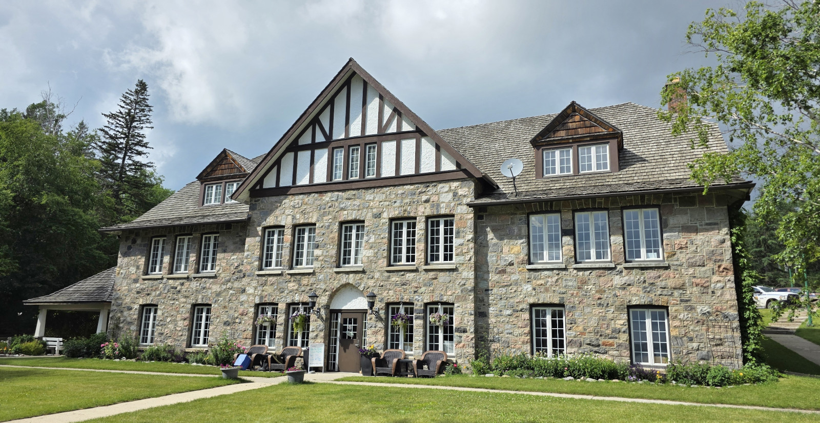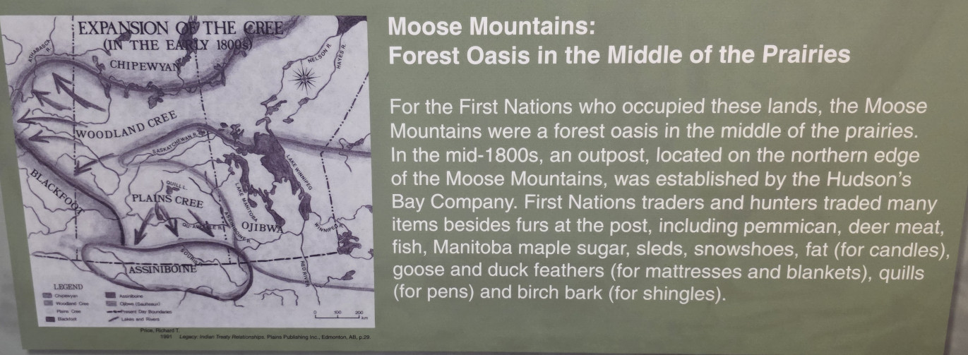 The visitor centre was on the lower level of the stone chalet with the park offices on the upper levels. The first chalet was completed in 1932 but just over 1.5 years later was destroyed by a fire and then rebuilt 1 year later. There were several exhibits to go through, including history of the stone chalet, Treaty 4 land claim settlement, wildlife in the park like the Cougar, and the ecology of the park with 1,000’s of lakes.